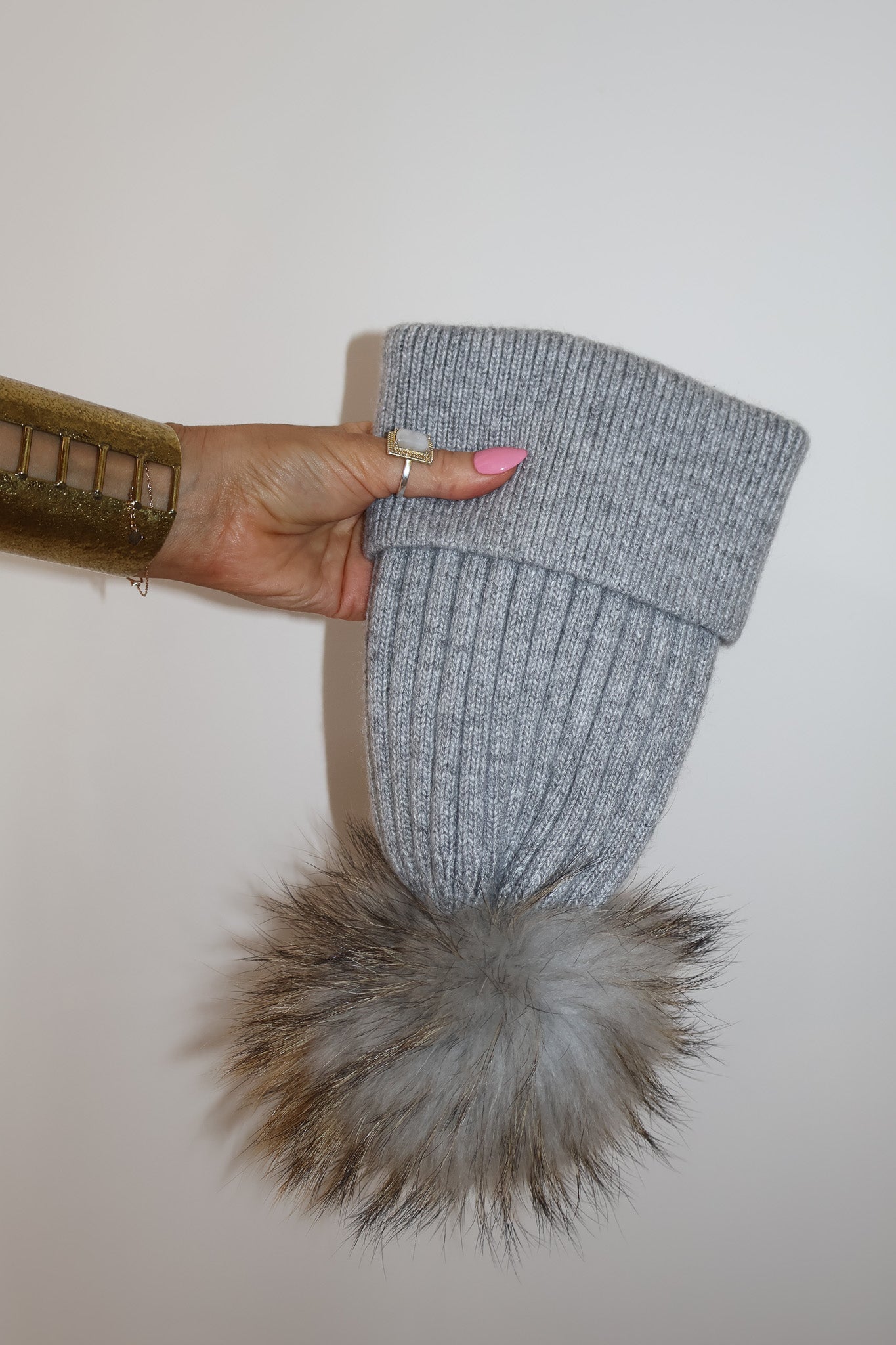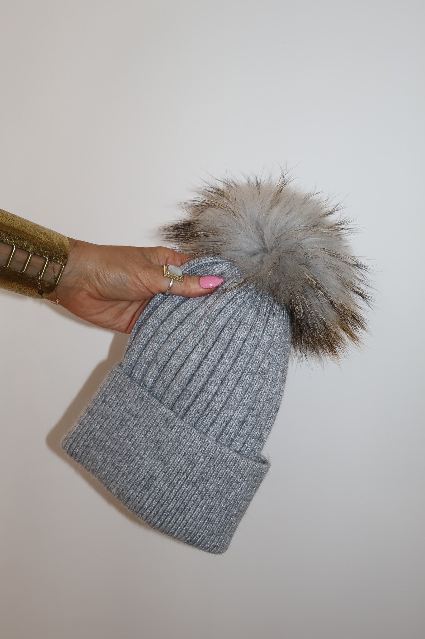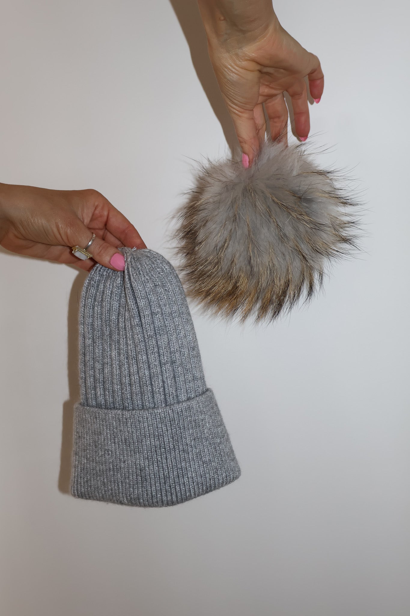 Our gorgeous Angora Grey Beanie with Pom Pom is a must-have winter accessory for those needing a little extra warmth in the cooler weather. The fur pom pom is detachable, so this angora grey beanie with pom pom can be worn with or without the pom pom - although we always recommend with!