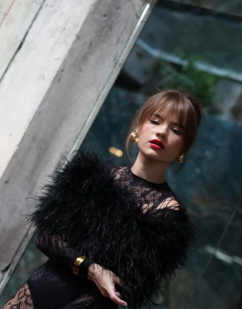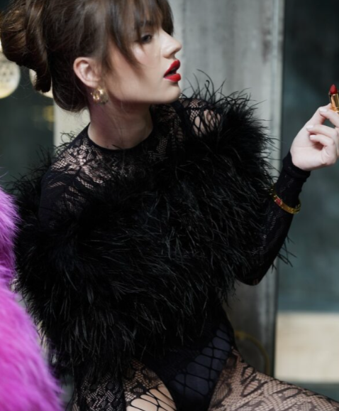 Elasticated Ostrich Feather Bandeaux. Can be worn as a strapless top or style over the arms like an off the shoulder shawl.