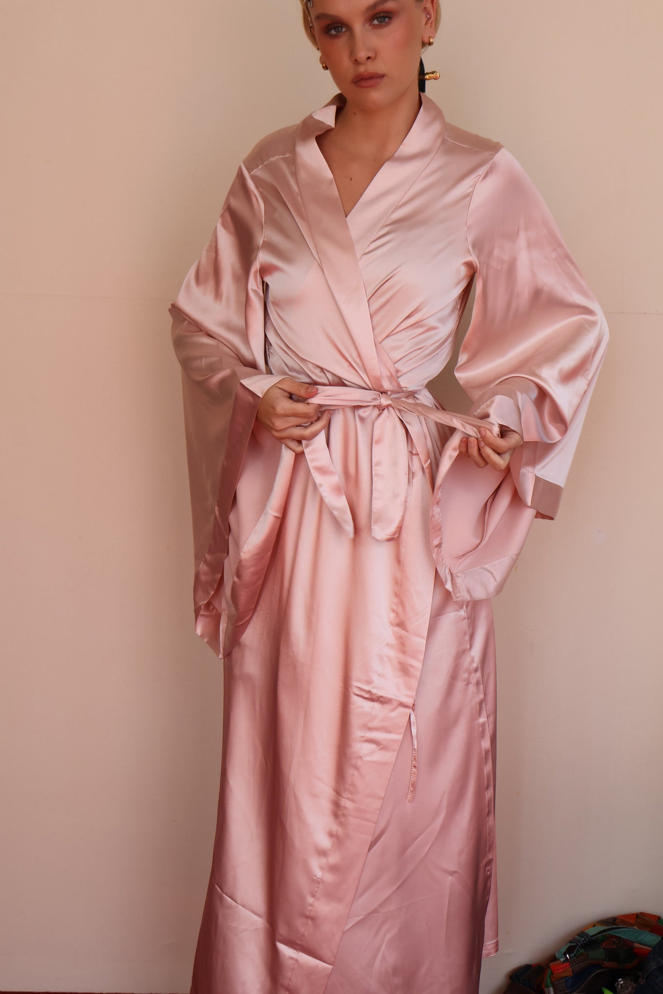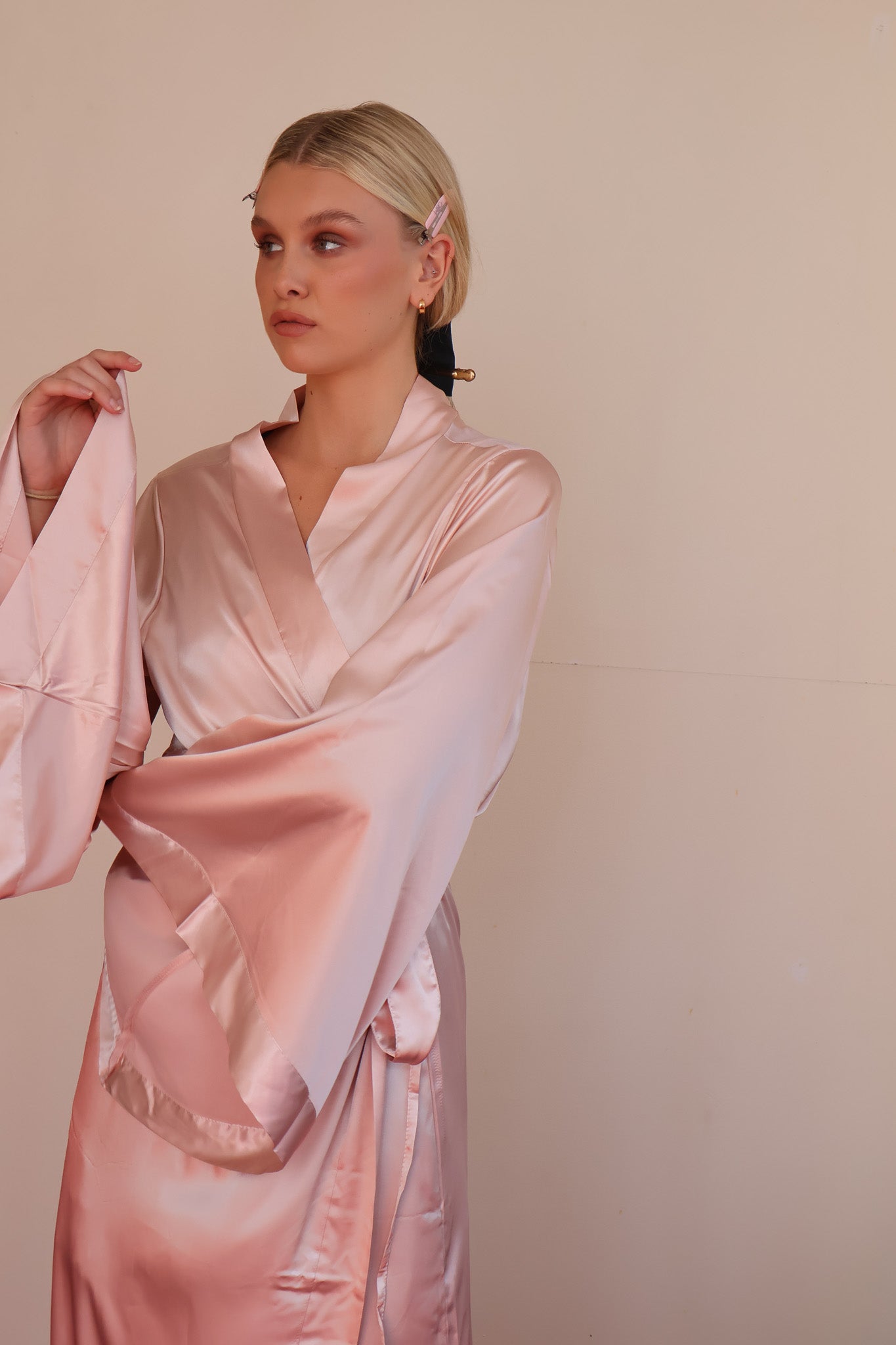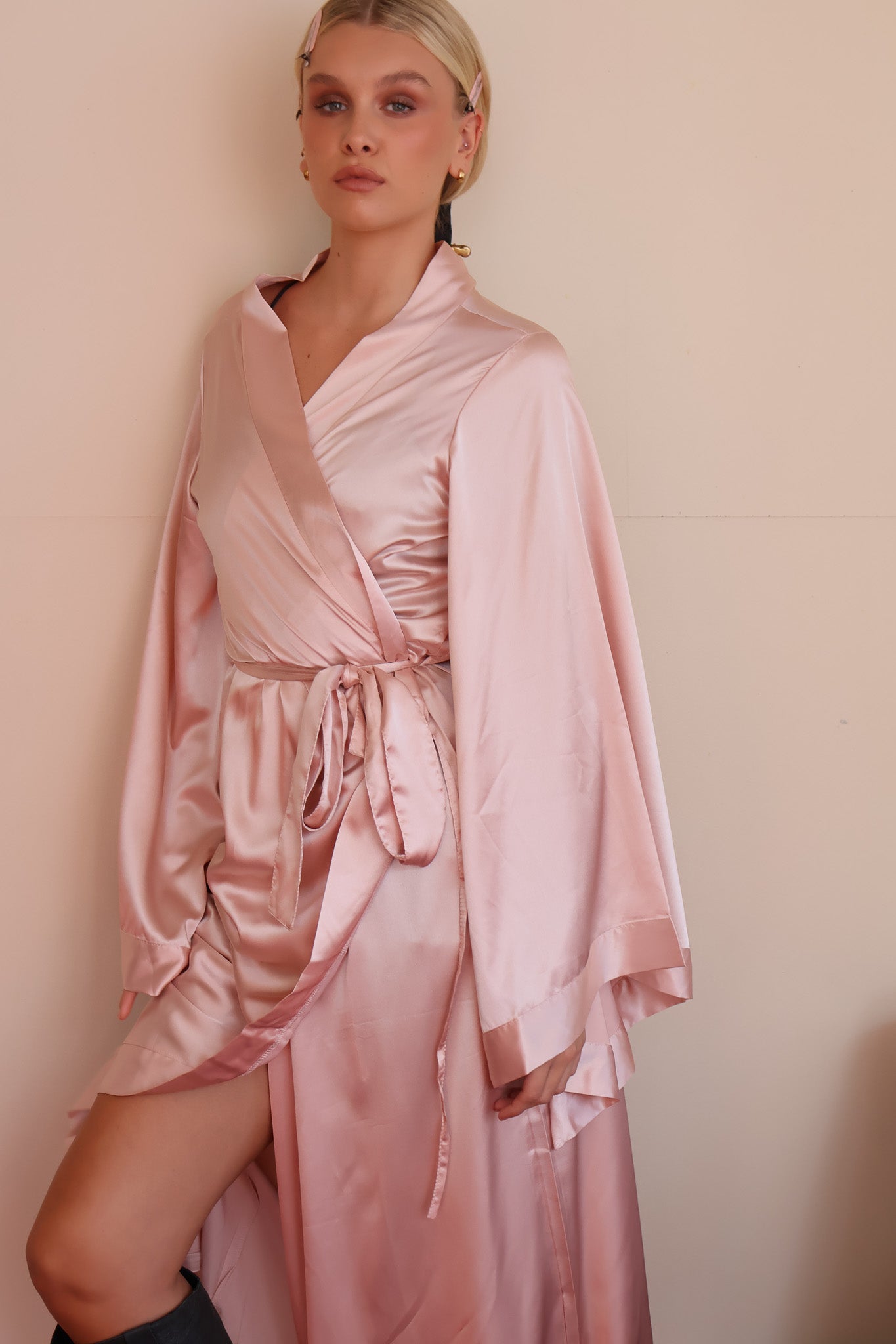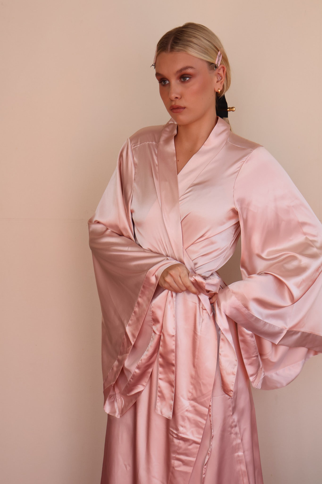 This gorgeous garment is made from sumptuous soft satin and features stunning exaggerated wide sleeves adding a touch of OTT glamour. Available in One Size and comes with a matching silky sash that ties at the waist and can be adjusted accordingly.