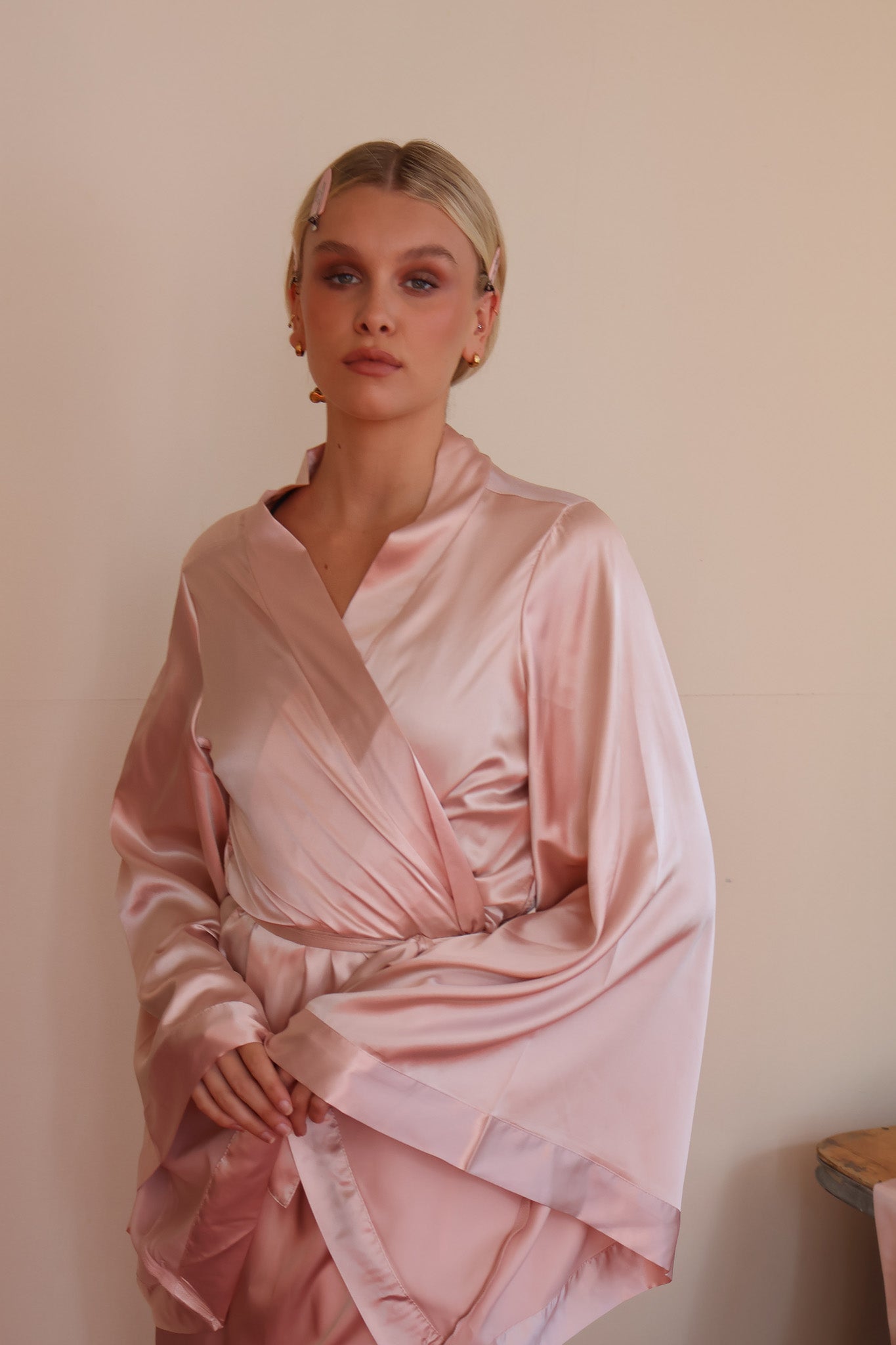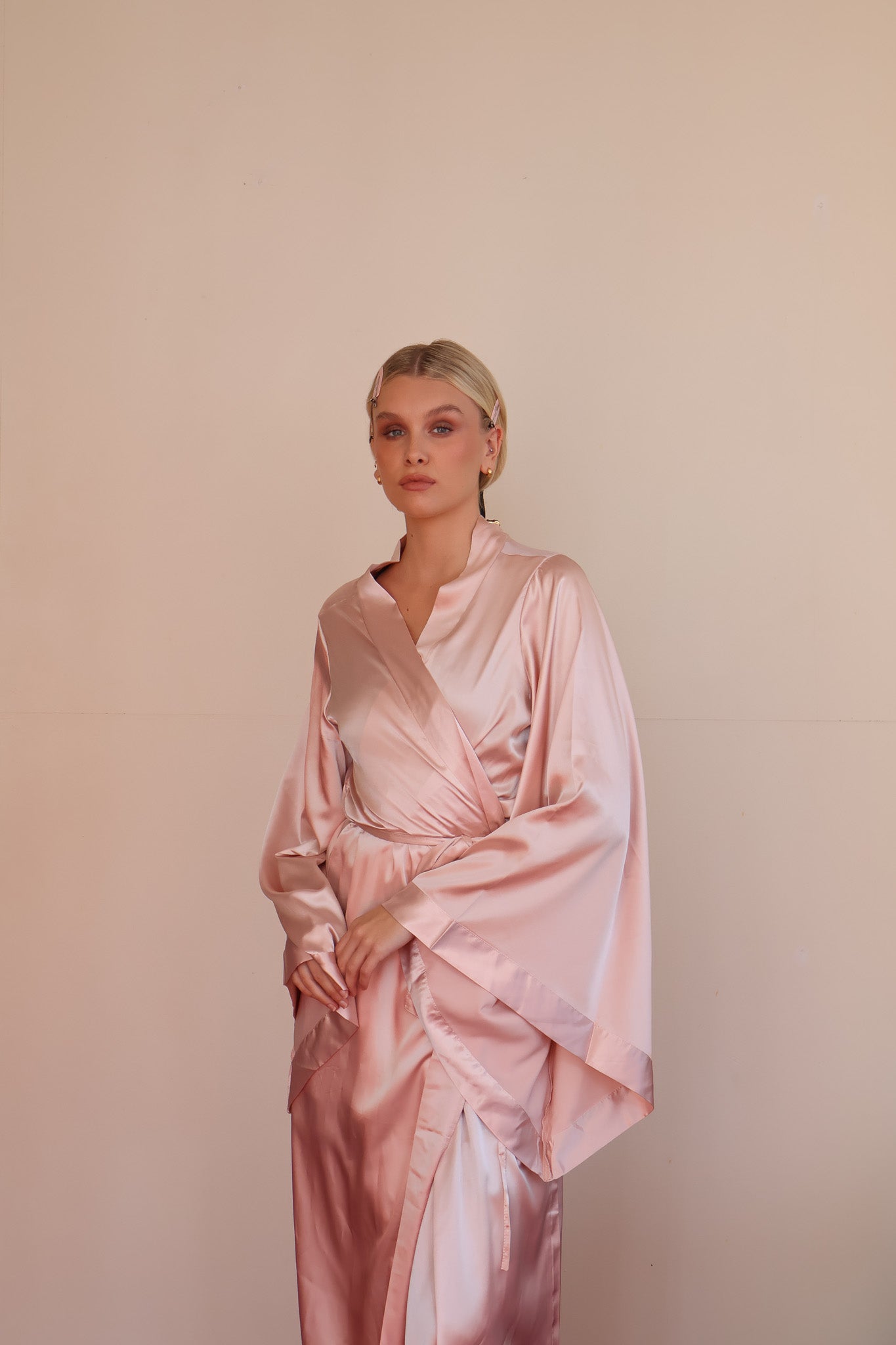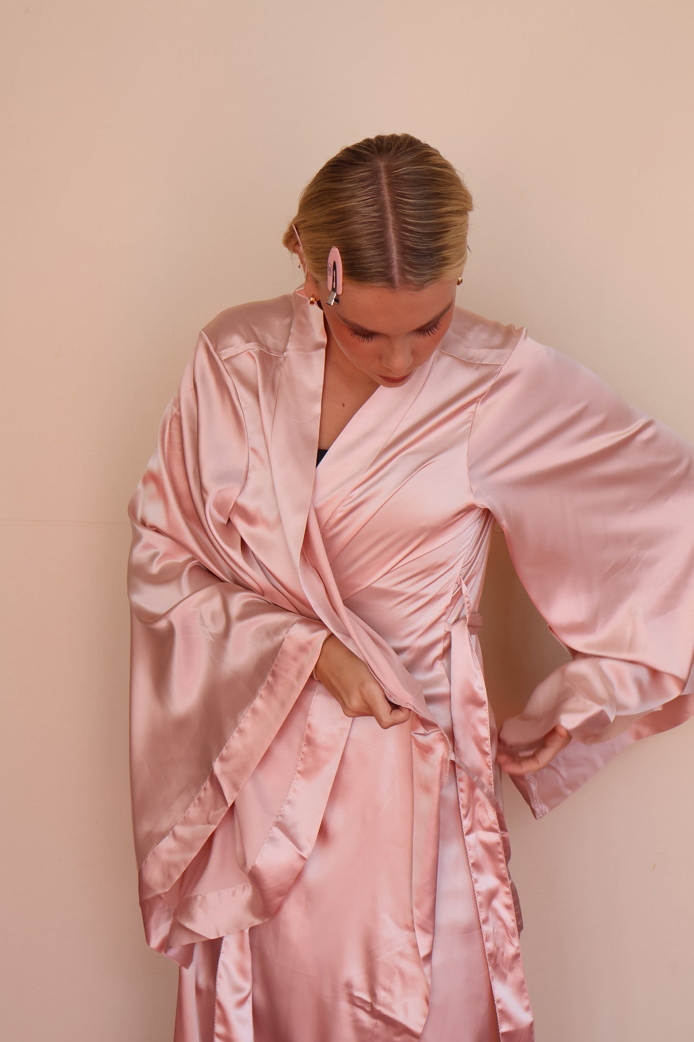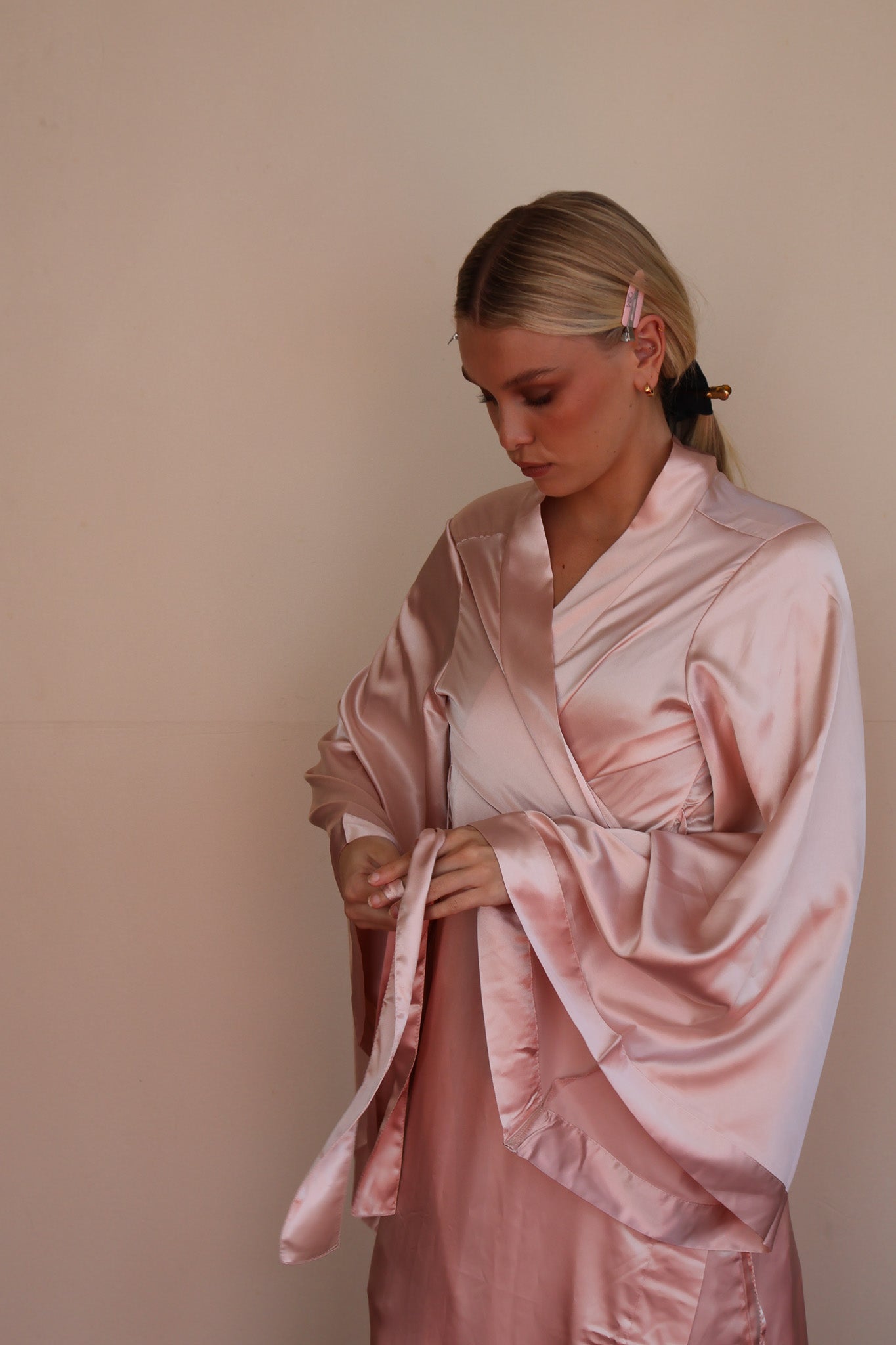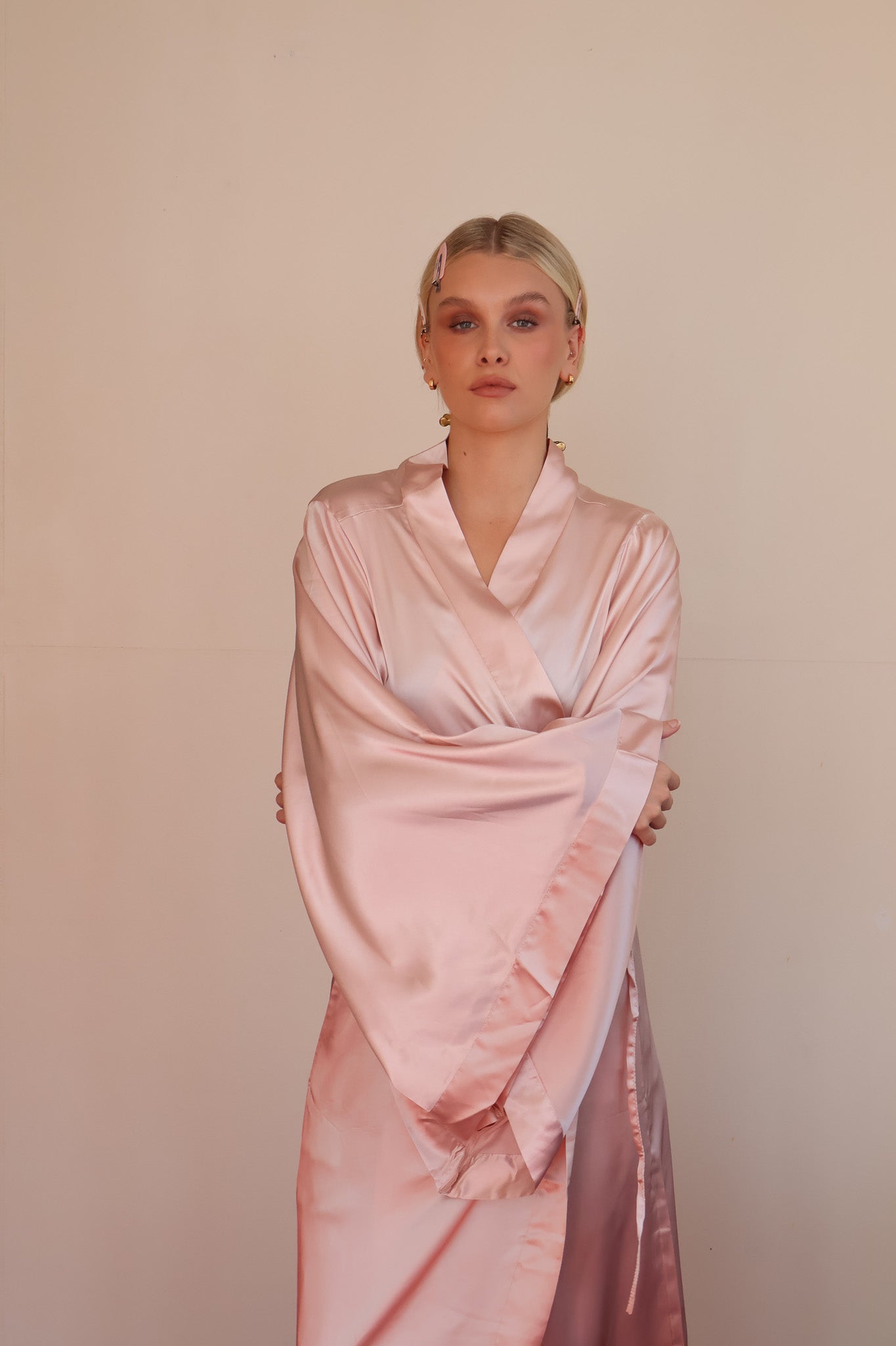 This gorgeous garment is made from sumptuous soft satin and features stunning exaggerated wide sleeves adding a touch of OTT glamour. Available in One Size and comes with a matching silky sash that ties at the waist and can be adjusted accordingly.