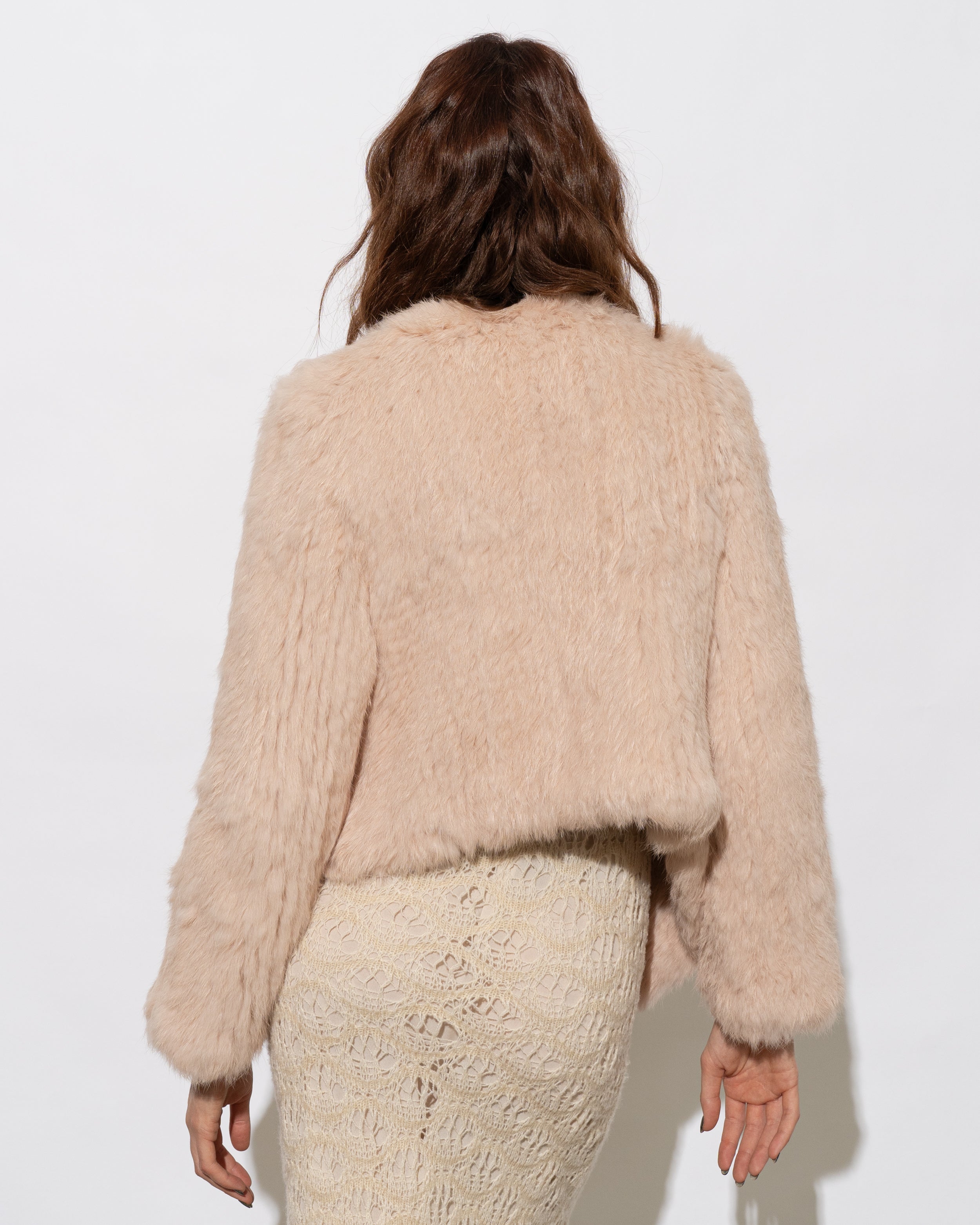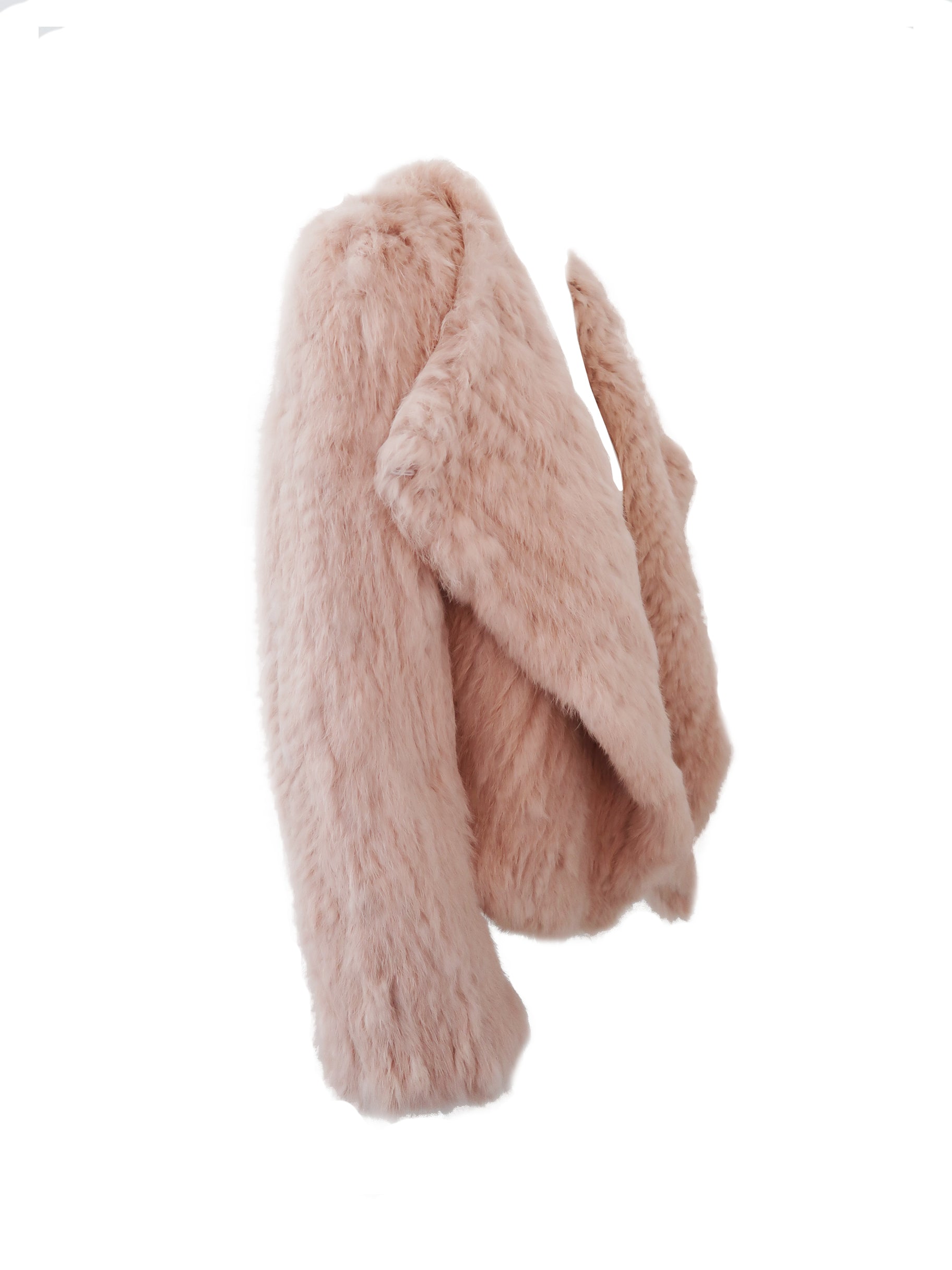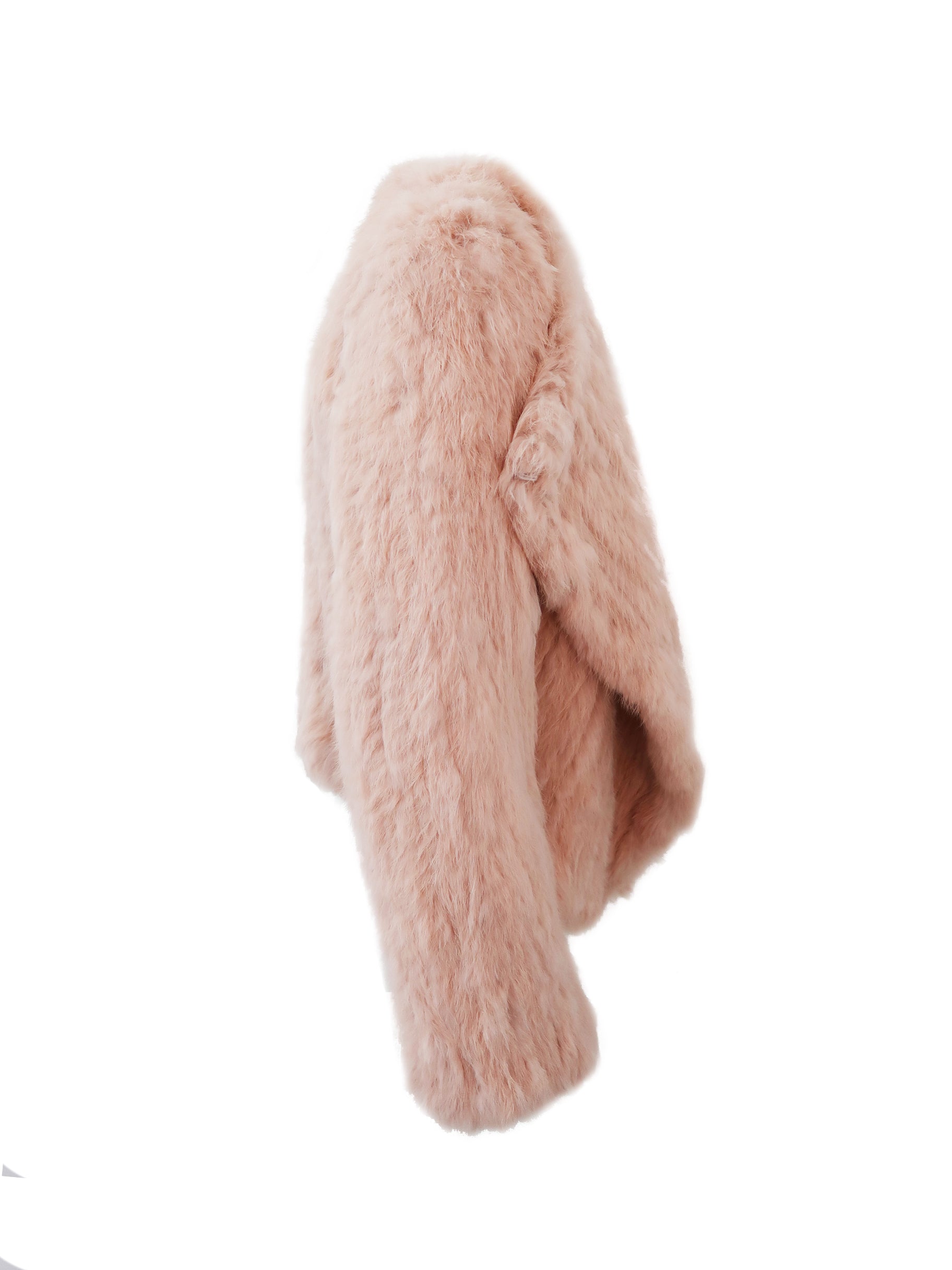 This rabbit fur jacket is resilient against a little spillage, a clean damp cloth or baby wipe will suffice for spot cleaning.