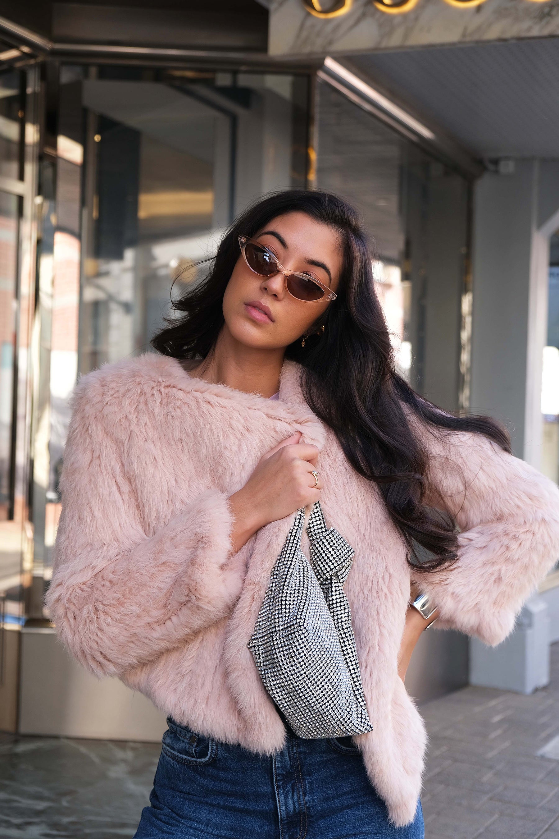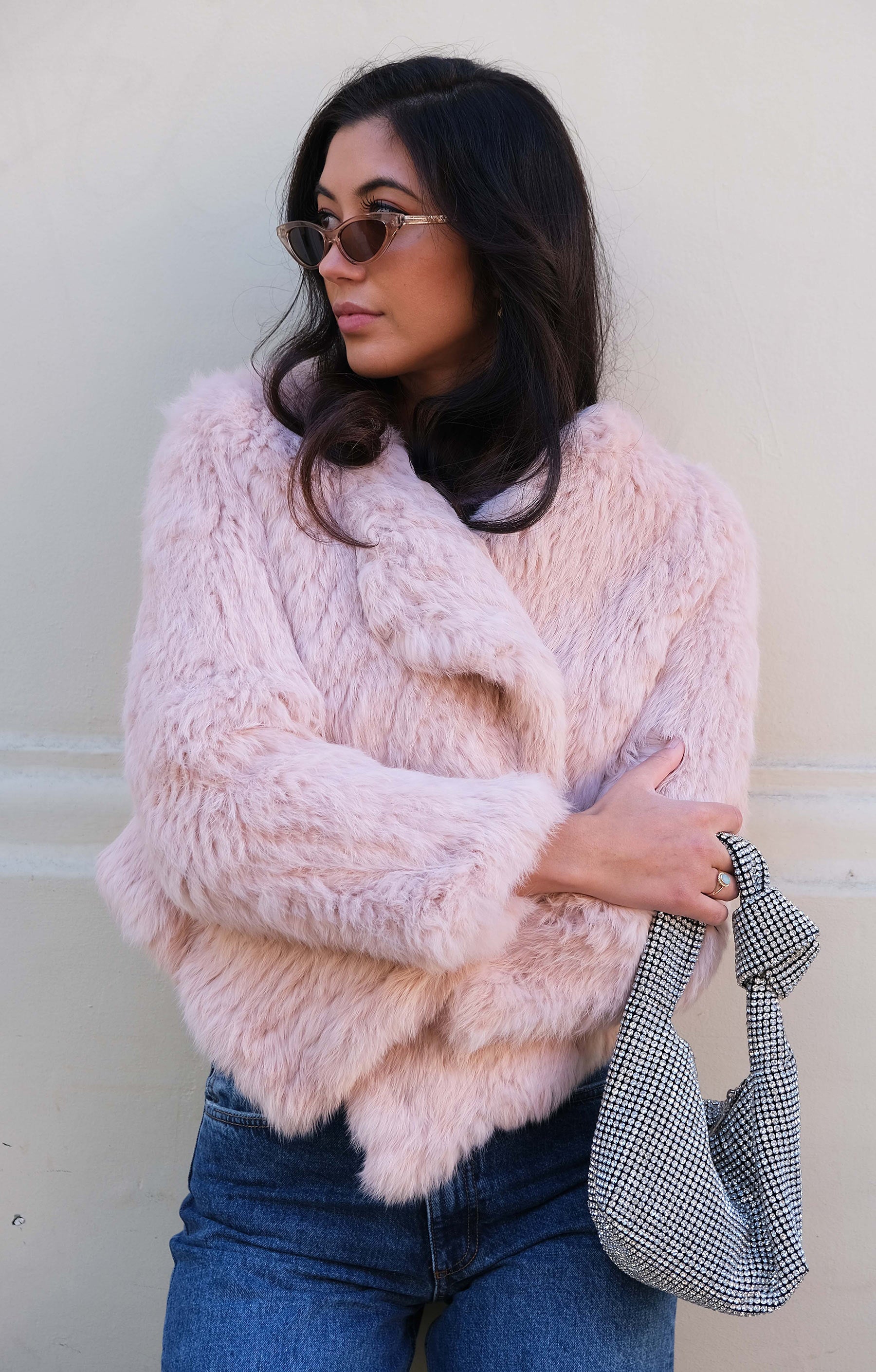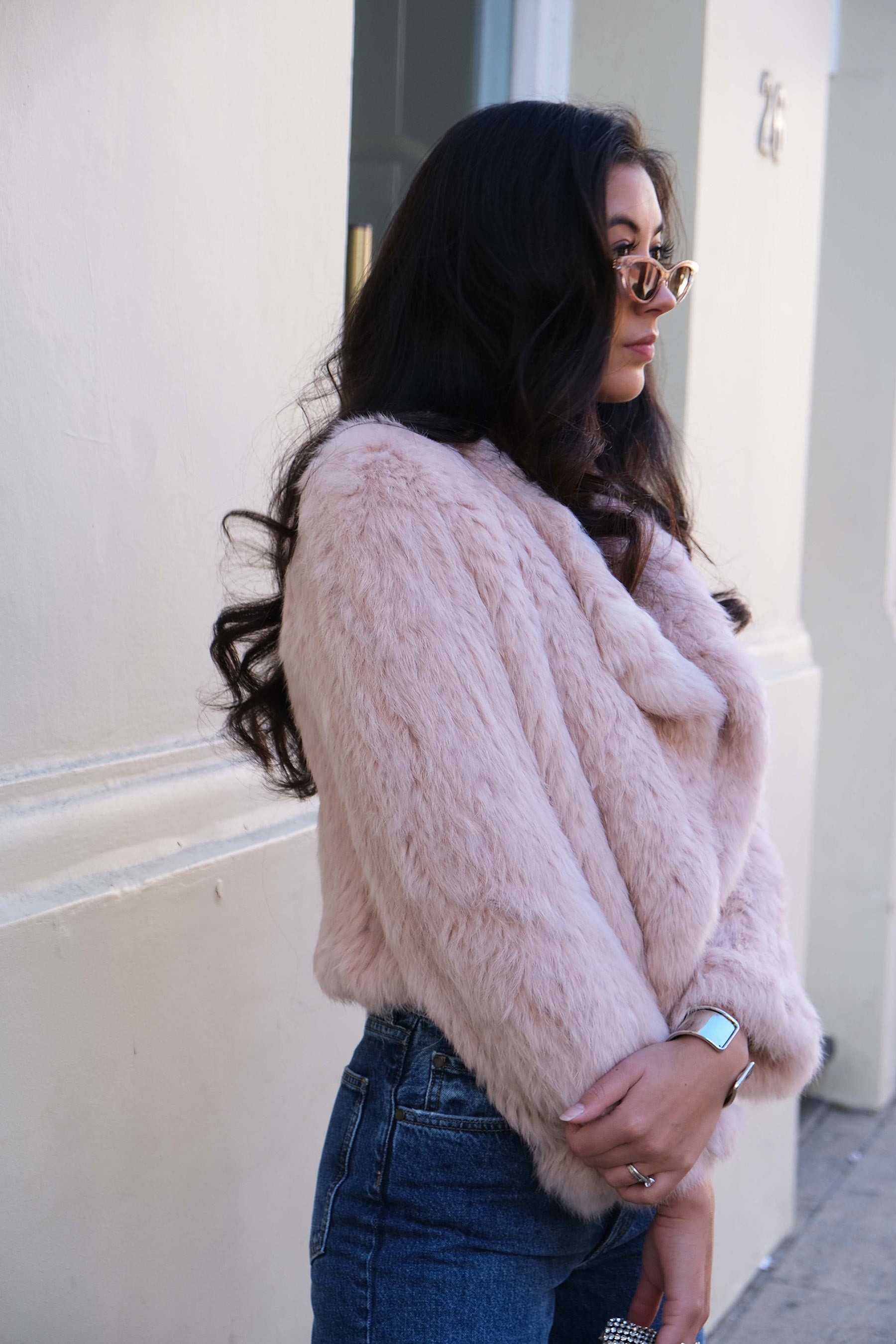 This rabbit fur jacket is resilient against a little spillage, a clean damp cloth or baby wipe will suffice for spot cleaning.