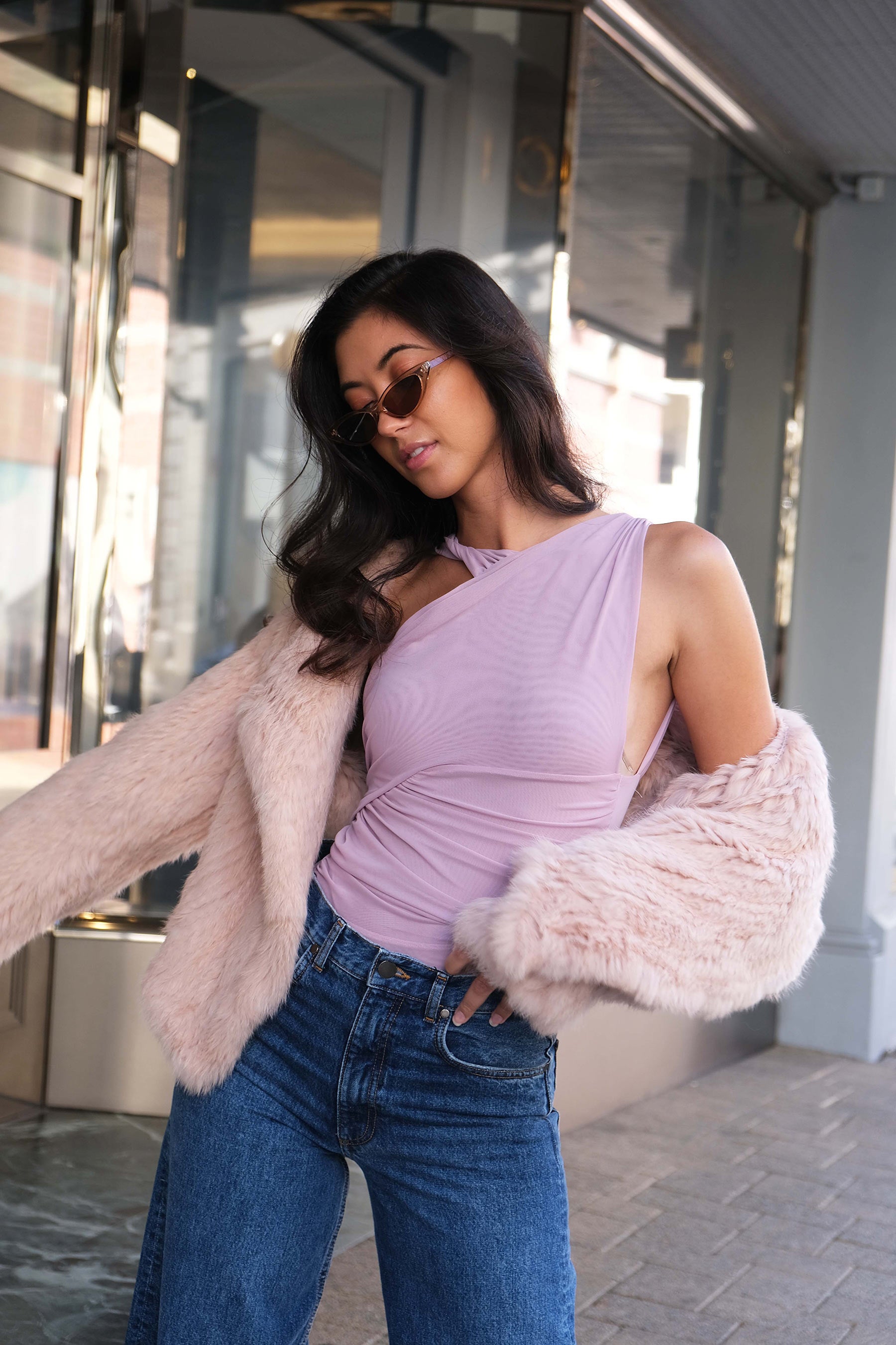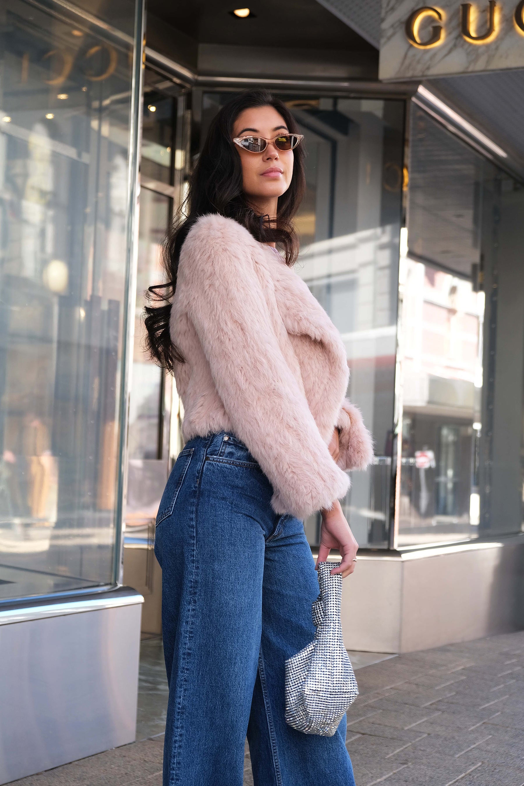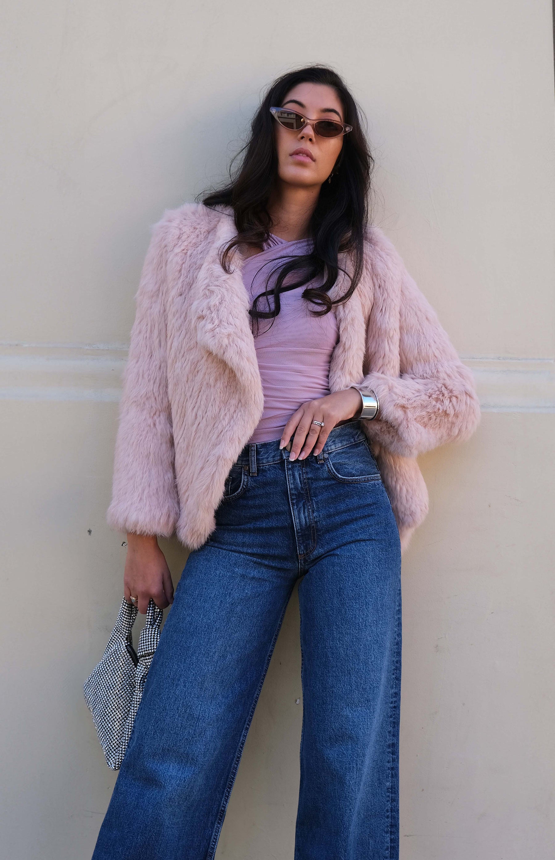 Dare to ride the style waves with the Elliott Biker Jacket in Navy. Its comfy fit, soft lightweight texture and knitted rabbit fur lining make it as easy to wear and just as easy on the eye. Pairing well for all occasions, the exaggerated lapels and cropped curved back hemline creates an effortless addition to style with your existing wardrobe staples.