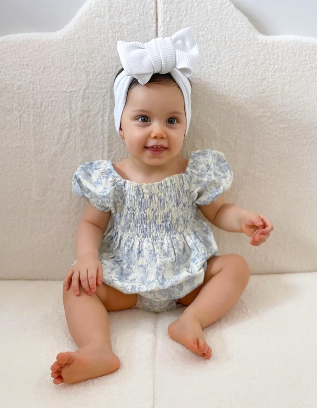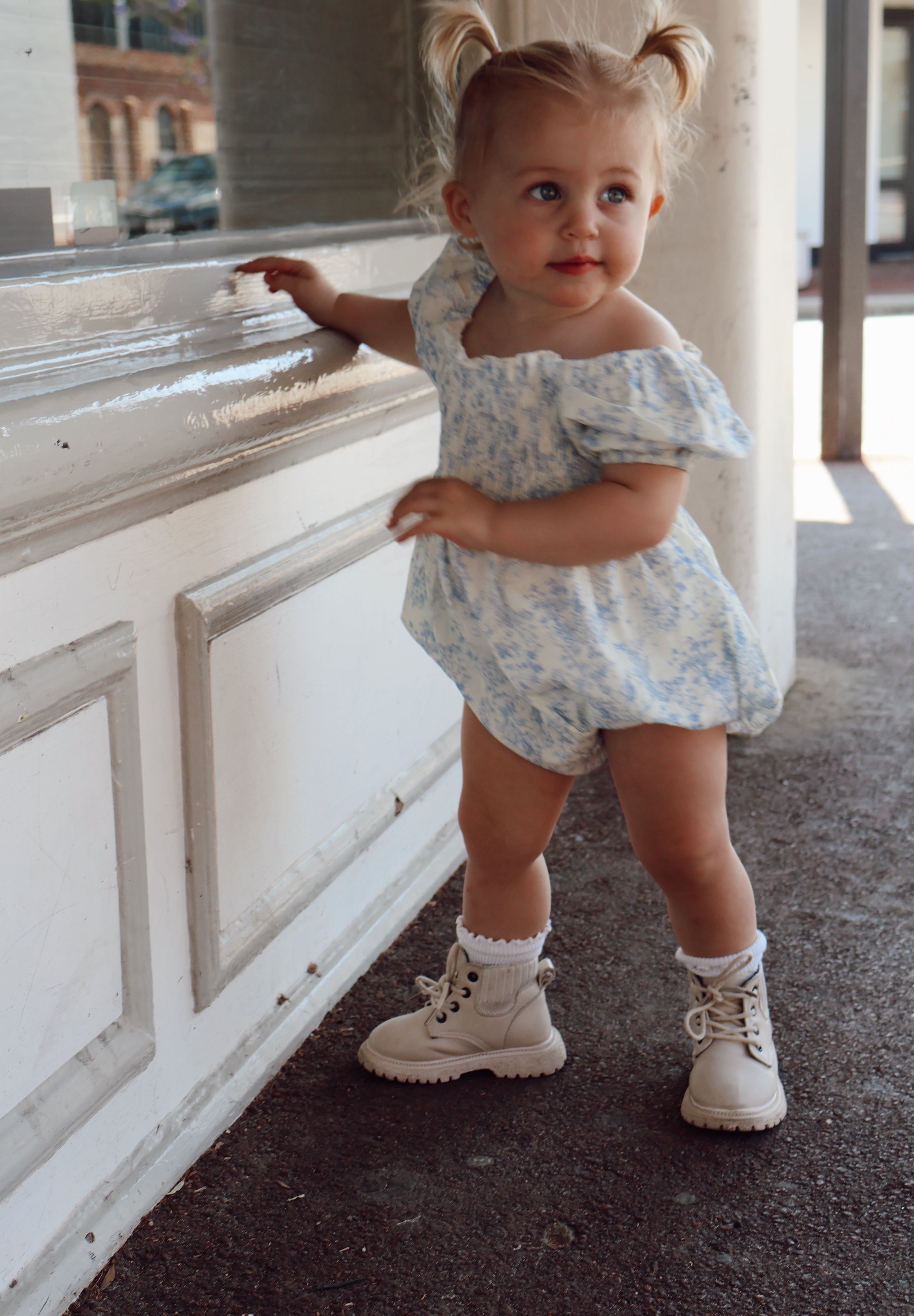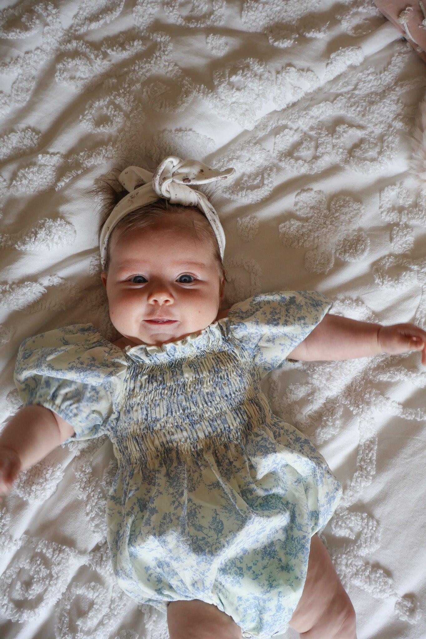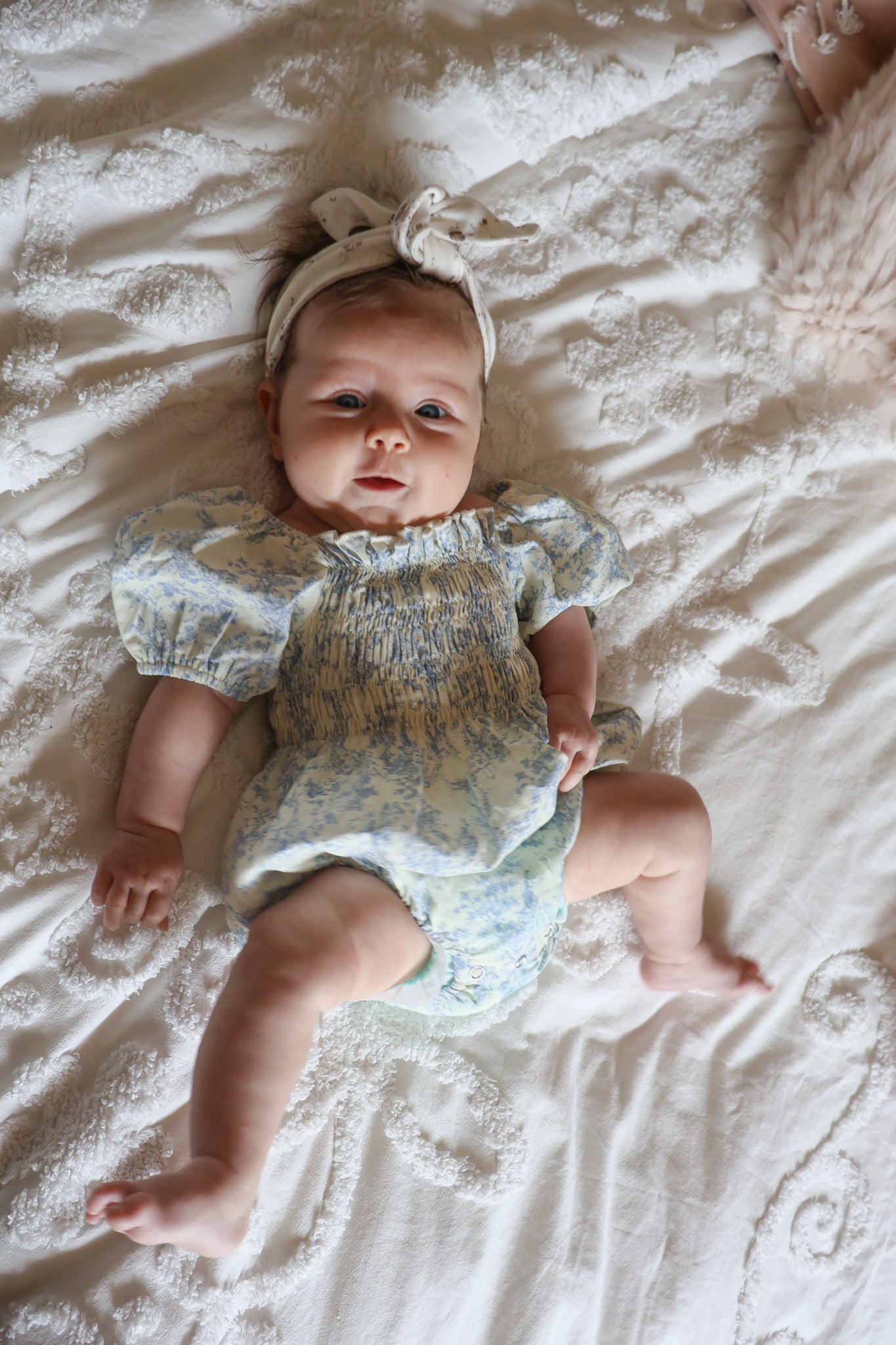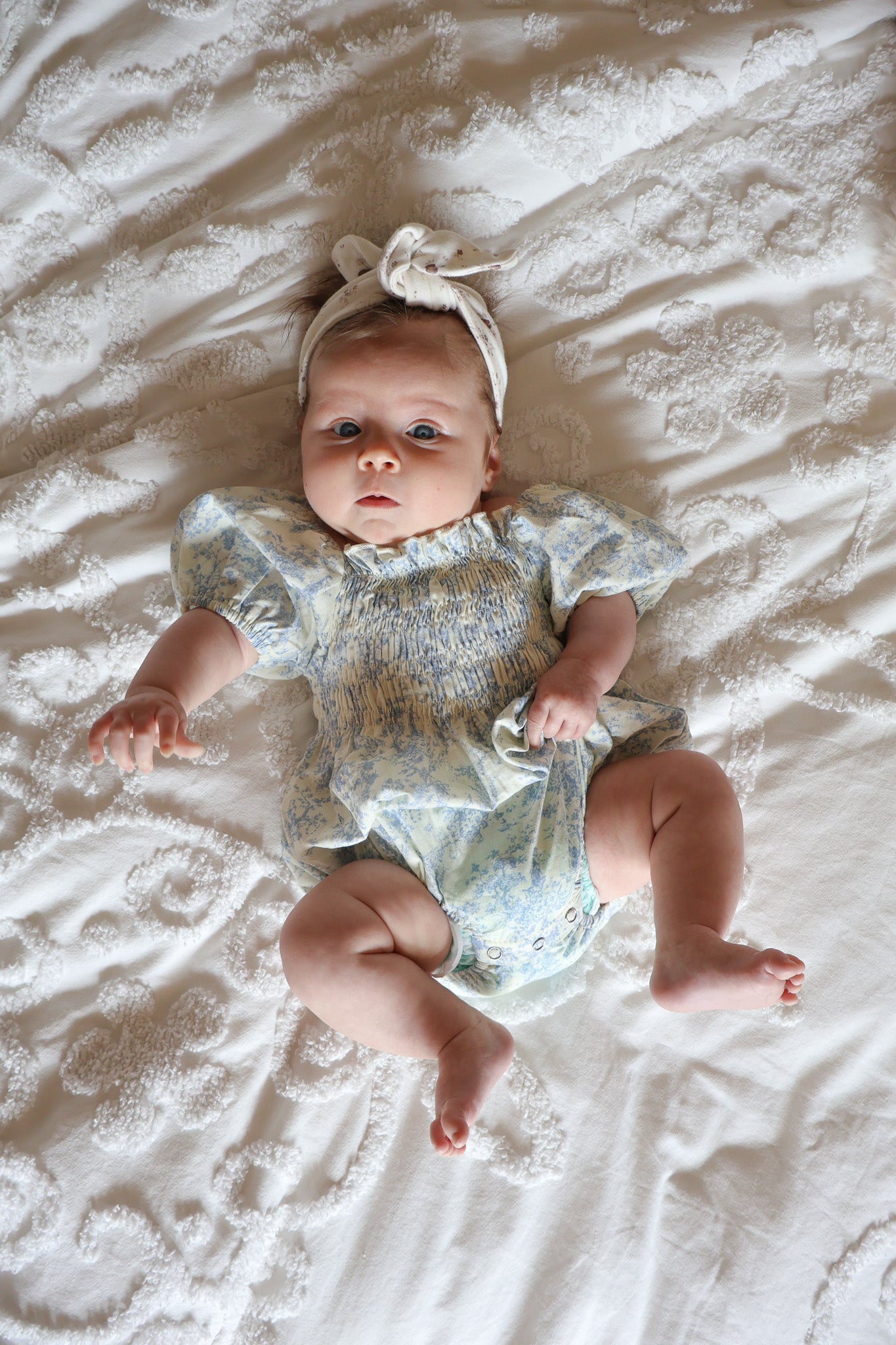 The Immi Baby Romper in Bluebell is an ideal choice for your newborn. The adorable romper features a delicate blue floral print and puff sleeves, accentuated with elasticated shirring on the bodice. Give your little one a romantic touch with this charming and comfortable romper.