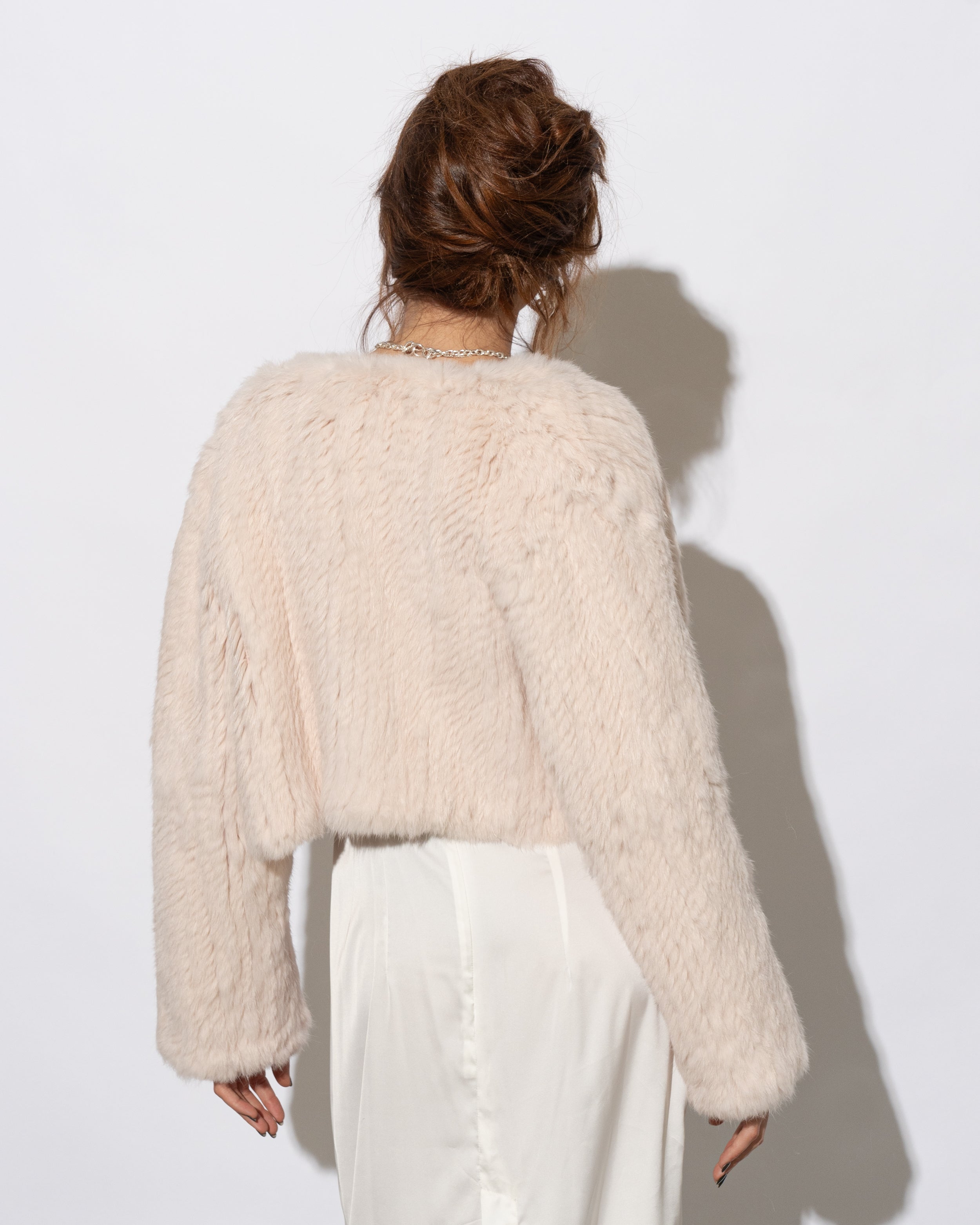 The Laci Long Sleeve Fur Jacket is ideal for brides who are seeking additional coverage on their wedding day. The cropped jacket style is available in either ¾ length of full length sleeves and the body of the jacket is shorter in length so it is designed to complement bridal gown, without compromising any shape or detail. This jacket is made from knitted rabbit fur and is lined with fur on the inside making it incredibly warm and luxurious.