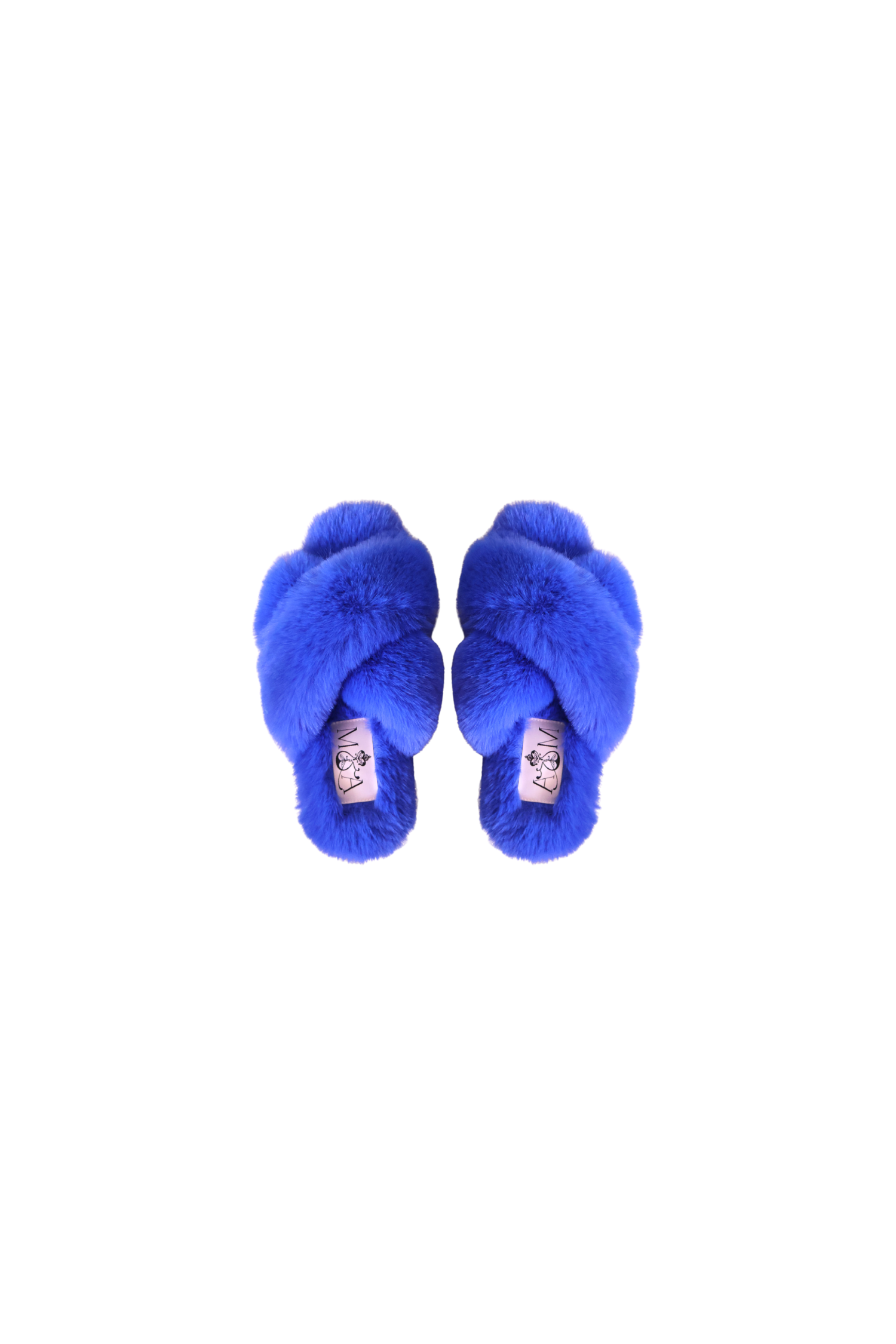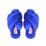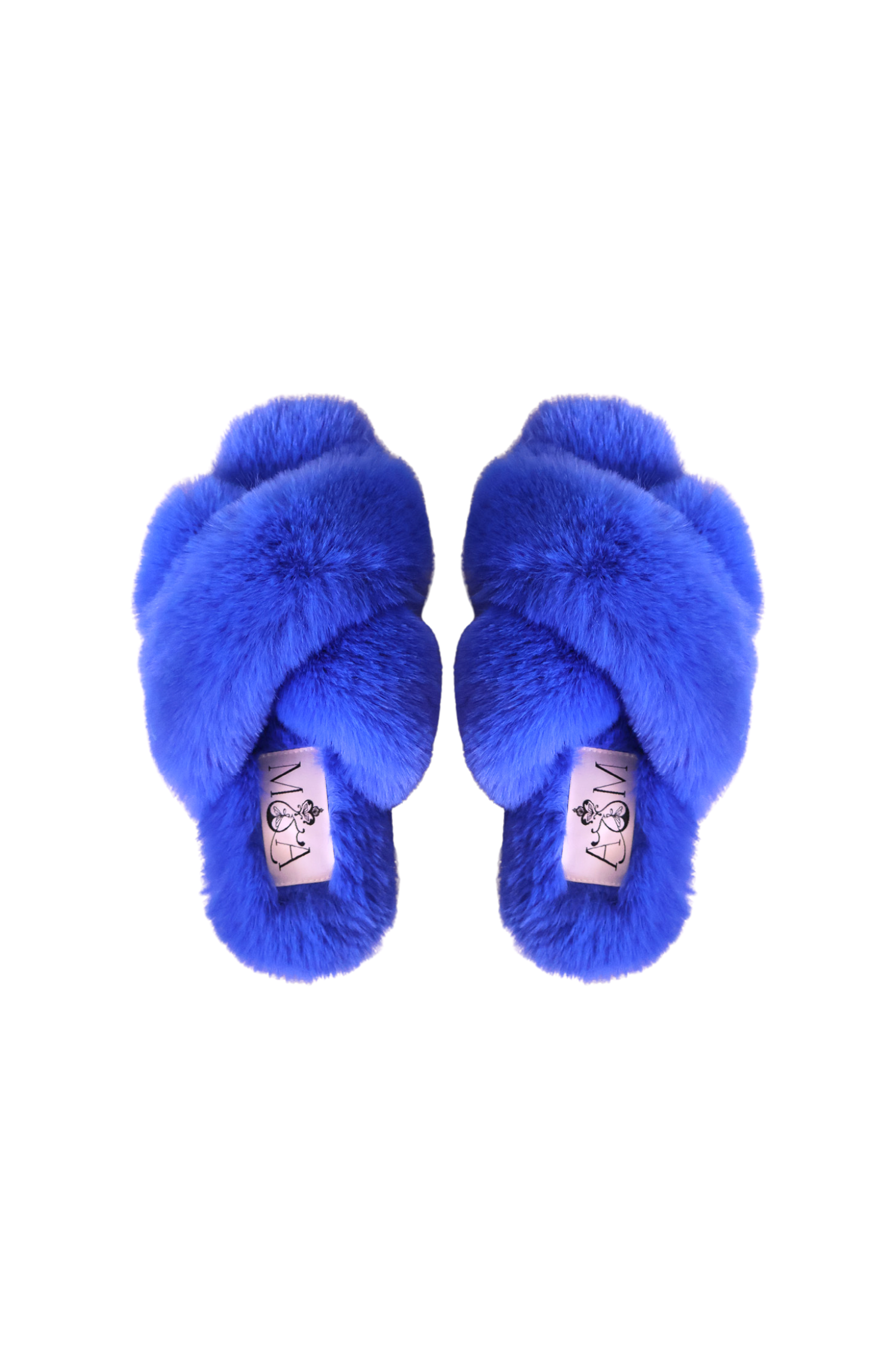 Lexi Fluffy Faux Fur Slippers in Cobalt