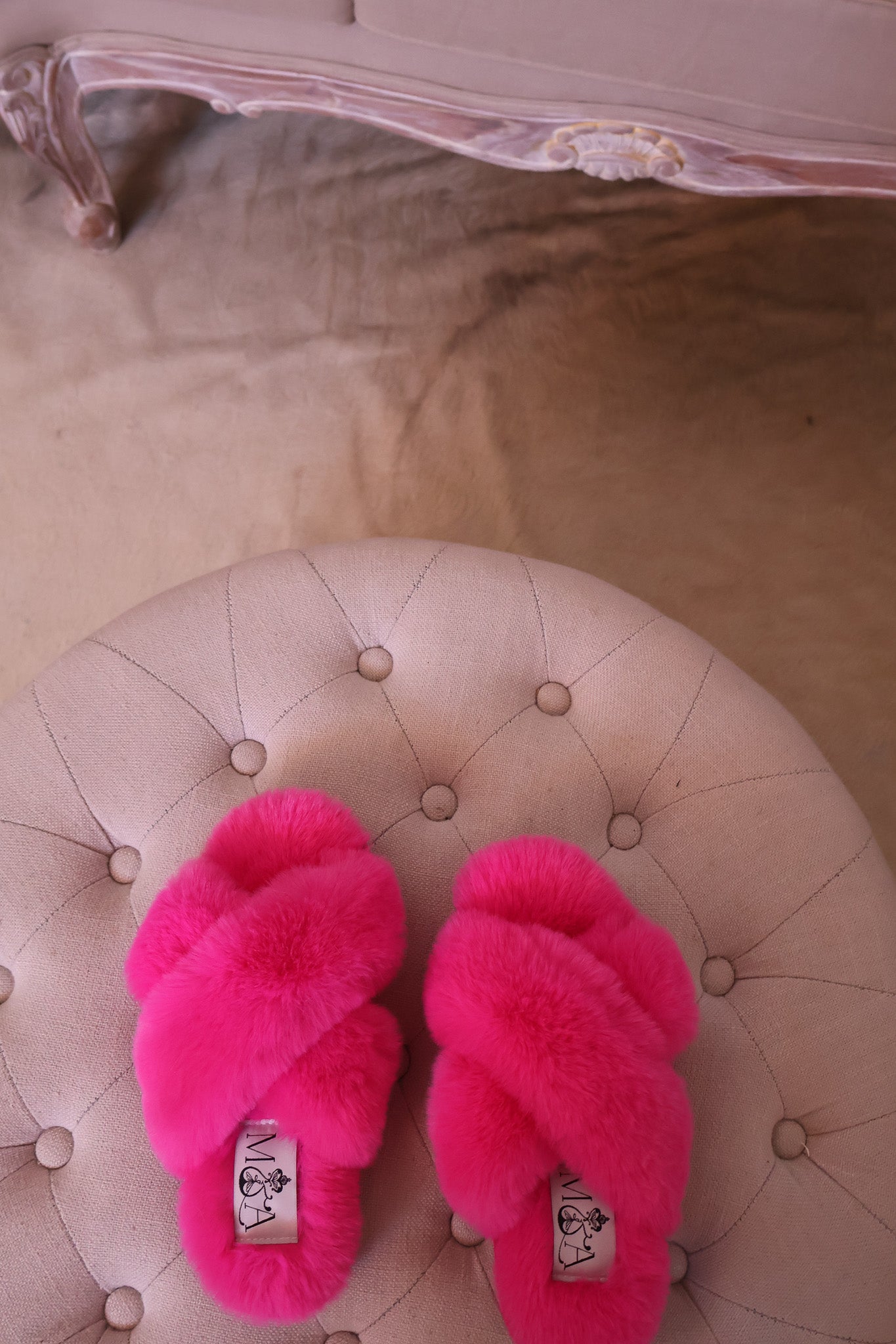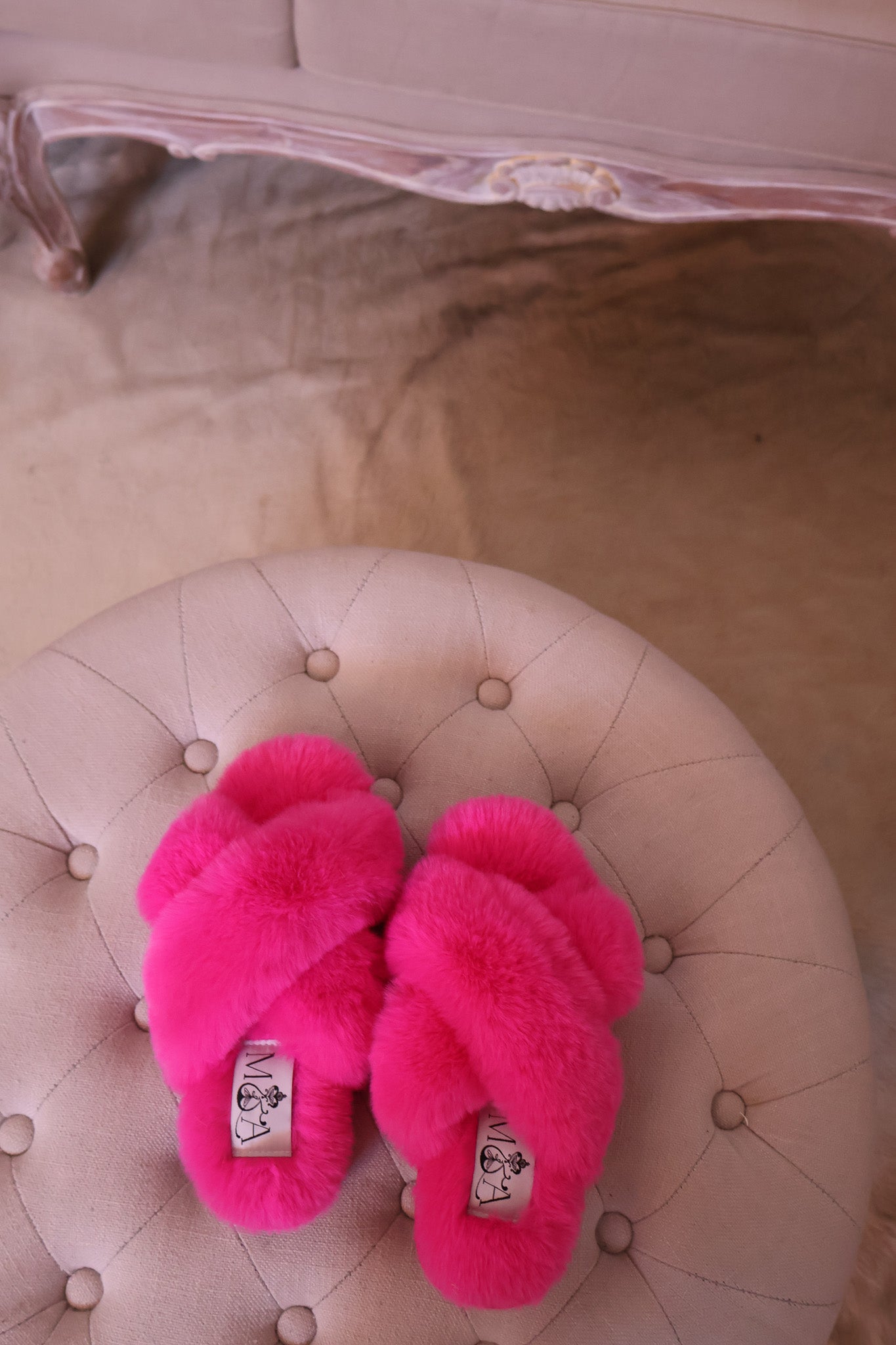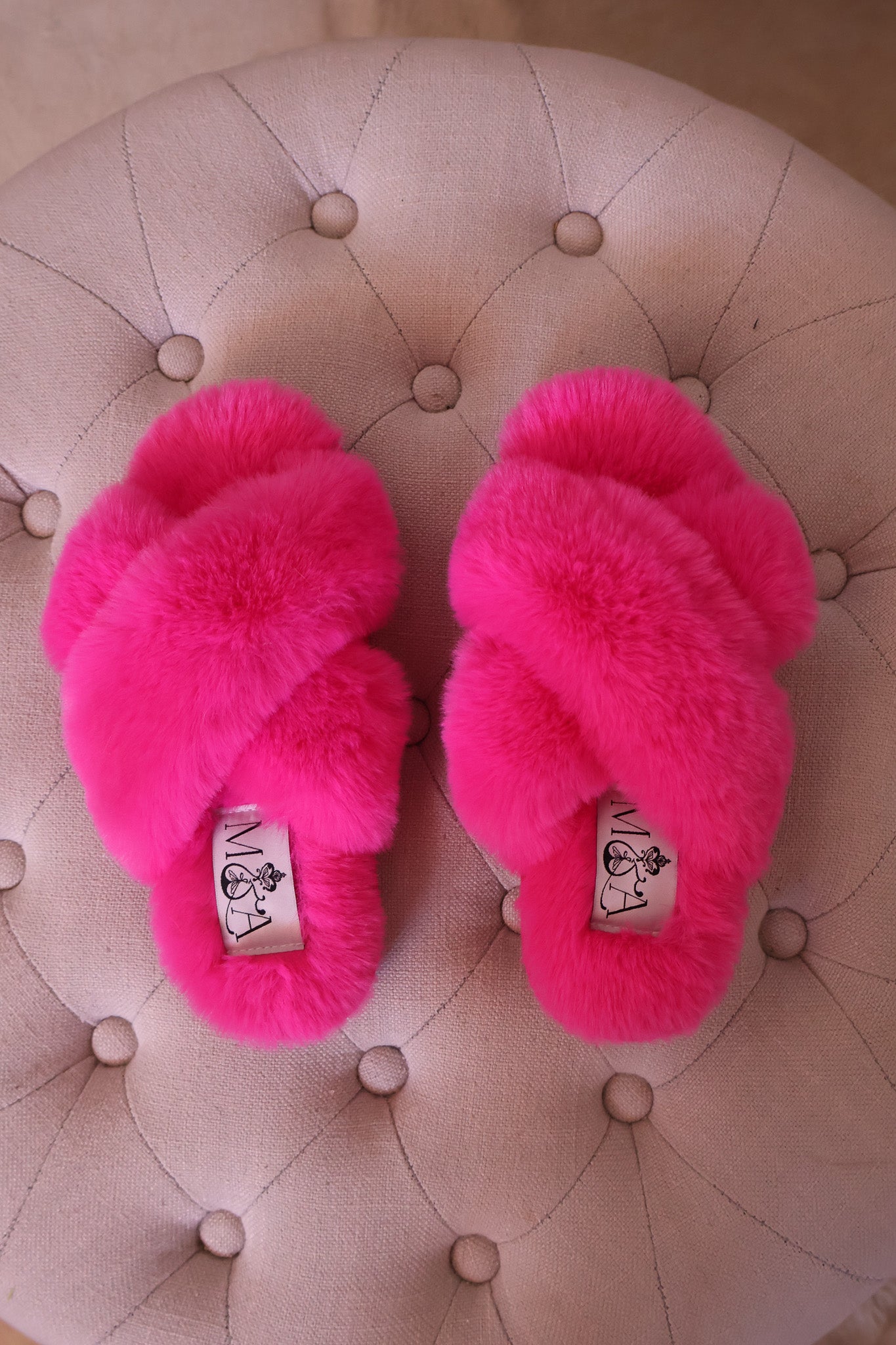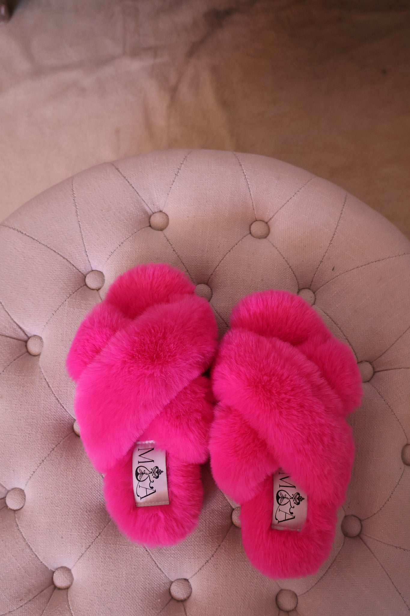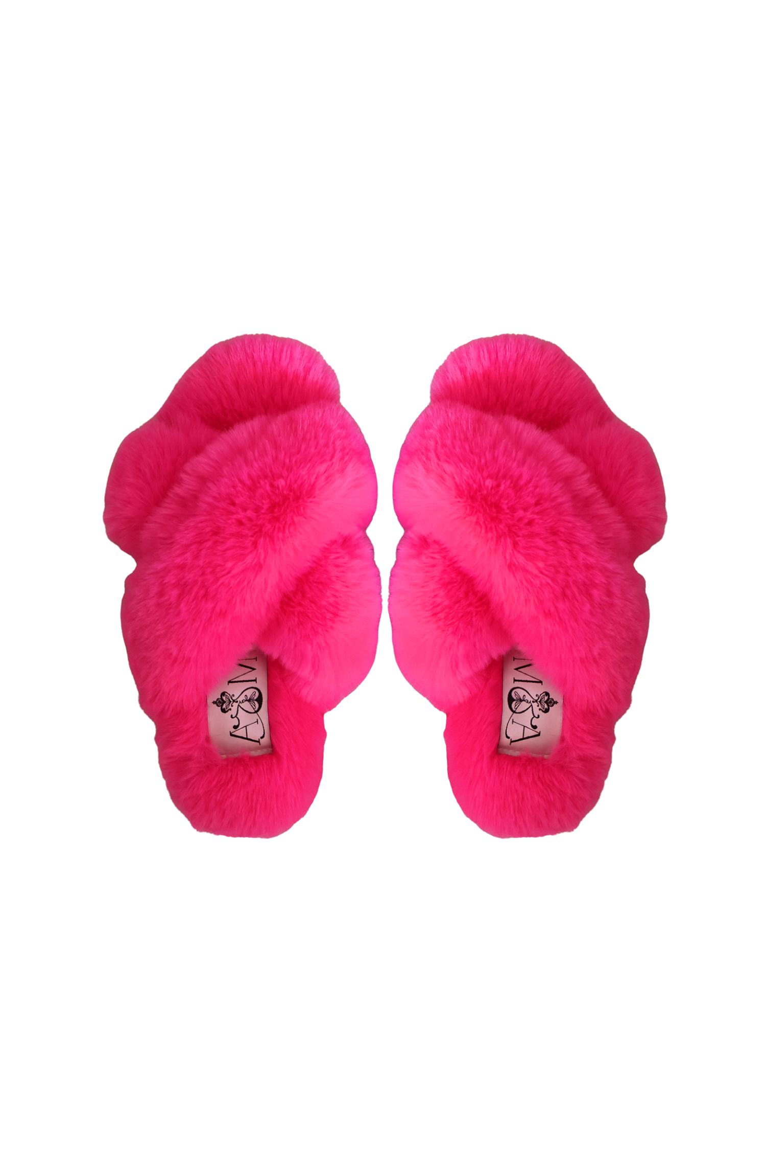 Say goodbye to boring slippers and hello to hot pink happiness! These bold, hot pink fluffy slippers are the ultimate statement piece for your feet. With irresistibly soft criss-cross straps that hug your toes like a cozy cloud, you’ll feel like you’re walking on sunshine (literally).