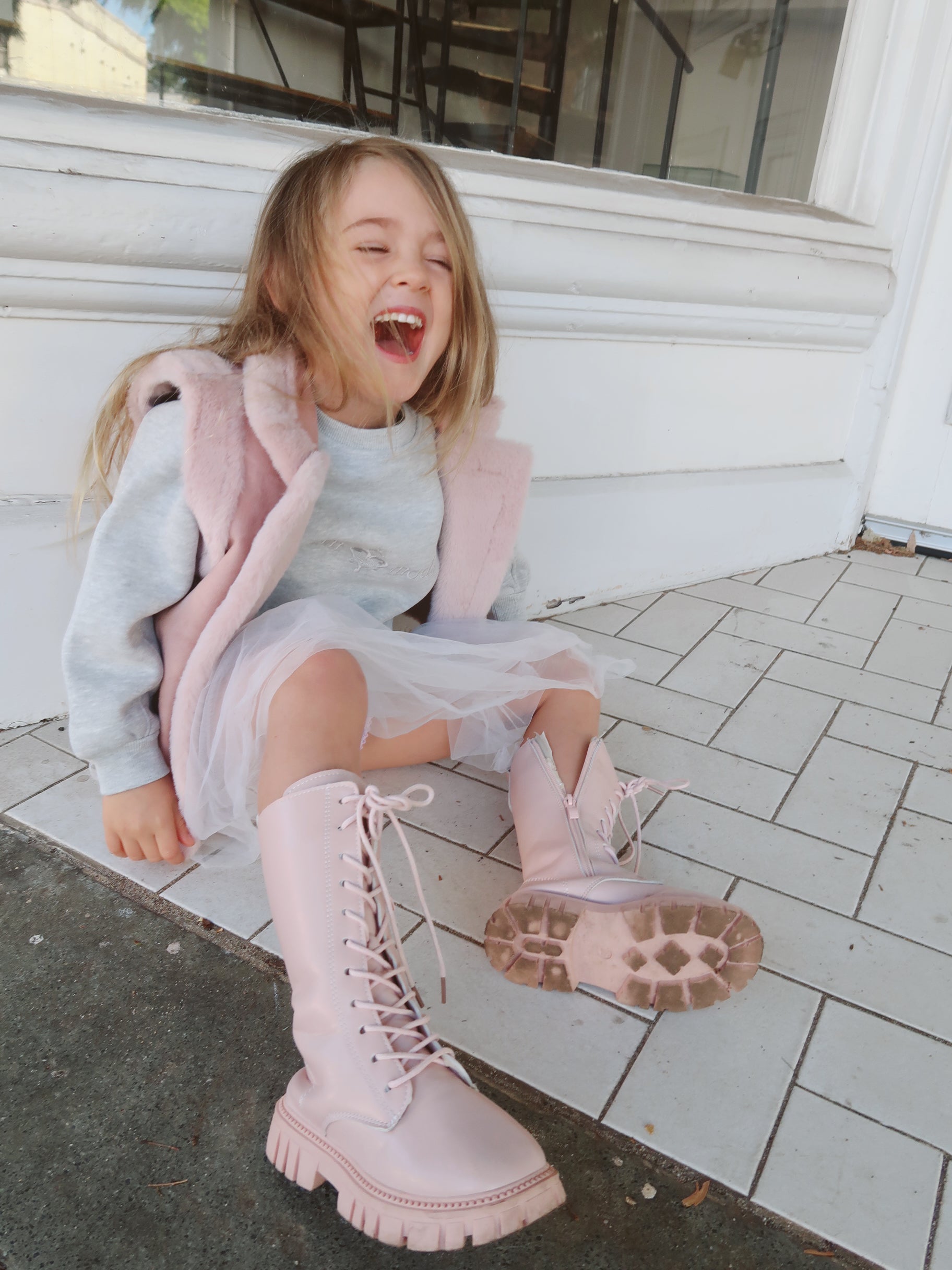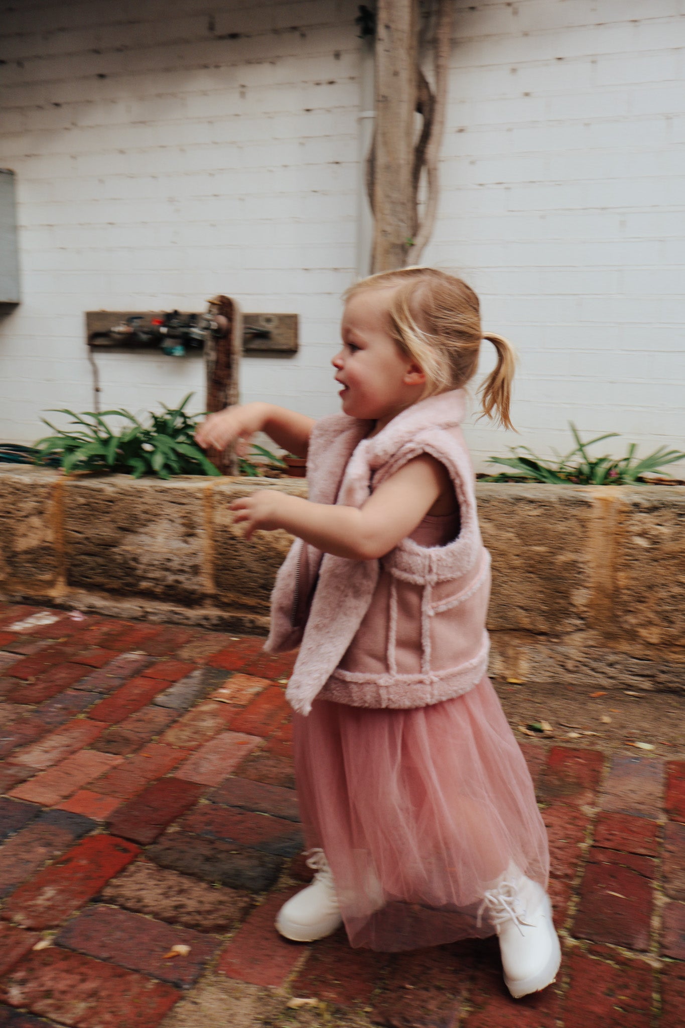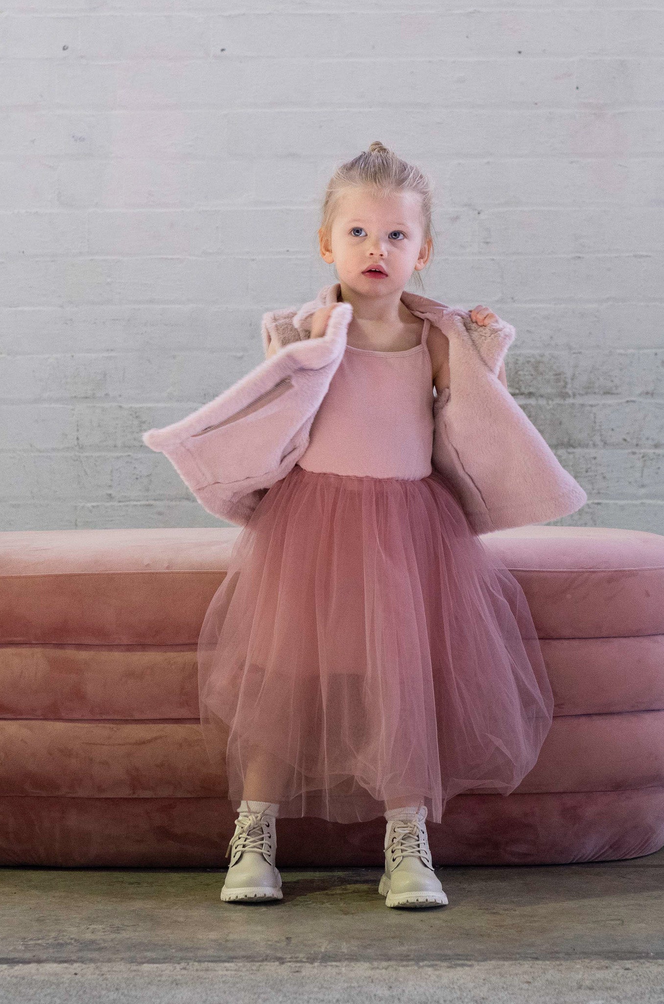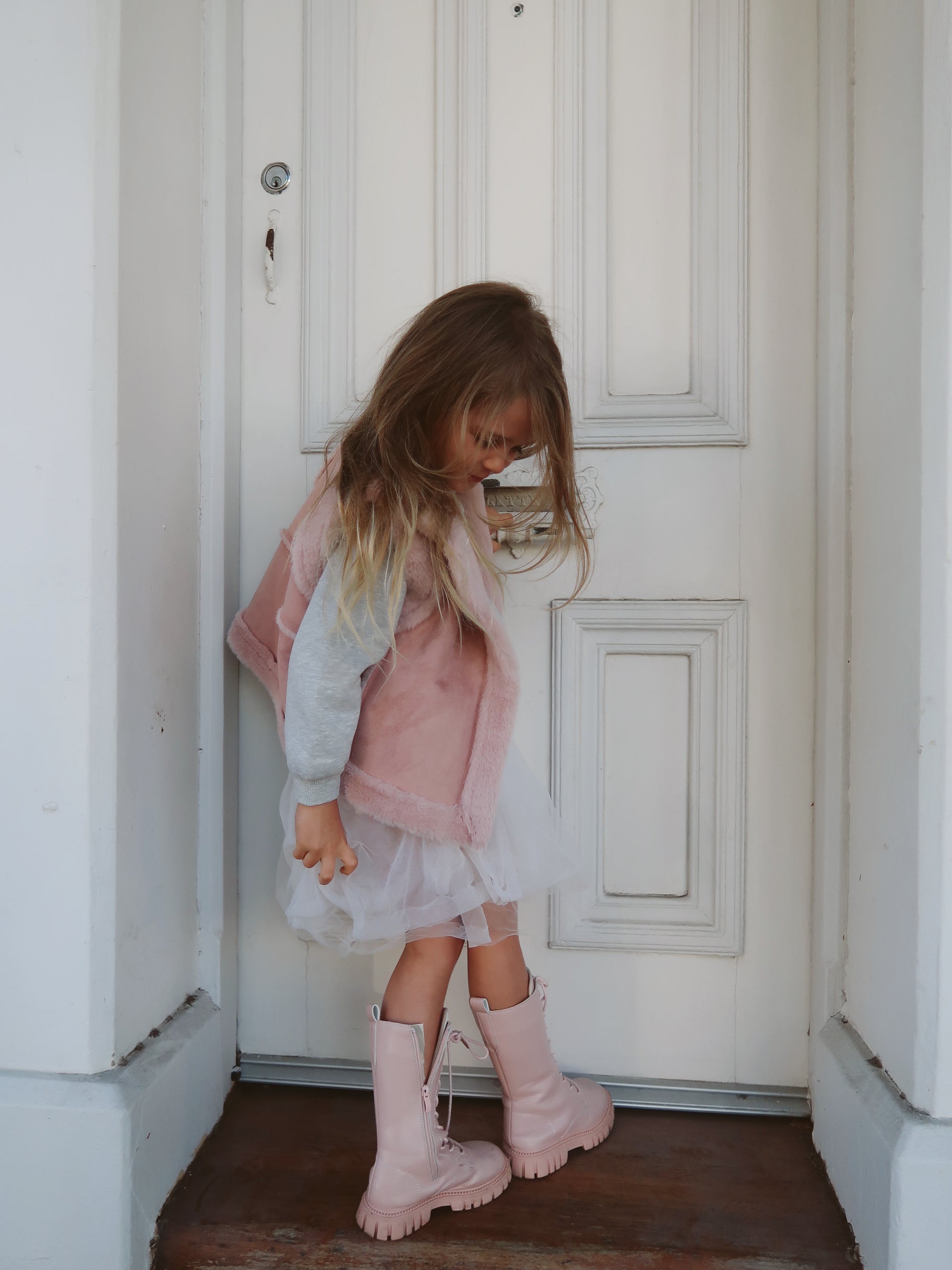 Meet the latest in our Mini Mode winter collection. The Lulu Biker Vest in Dusty Pink. With its stunning soft faux fur interior lining, to faux suede panel detailing and zippers - this coat is designed to turn heads when your little one is on her way for a babycino.