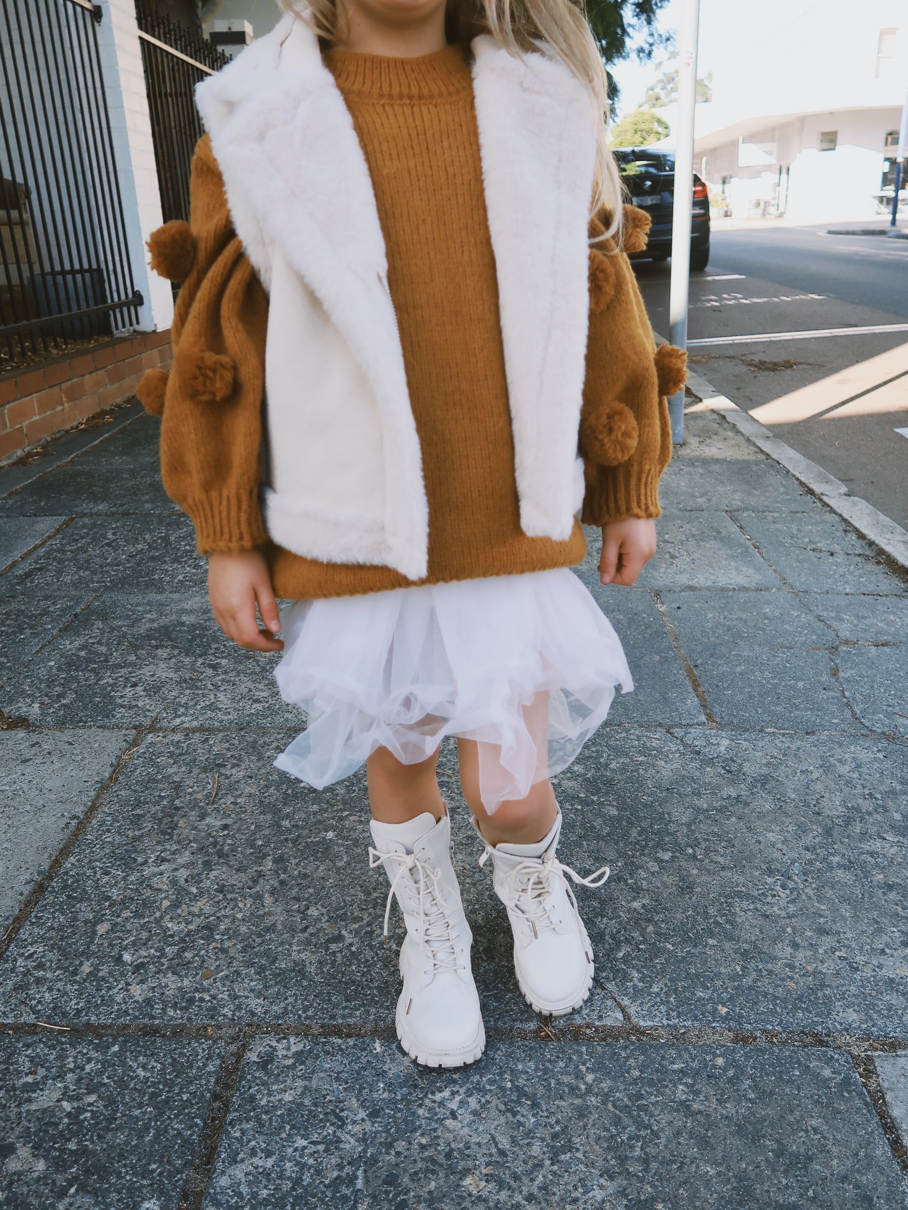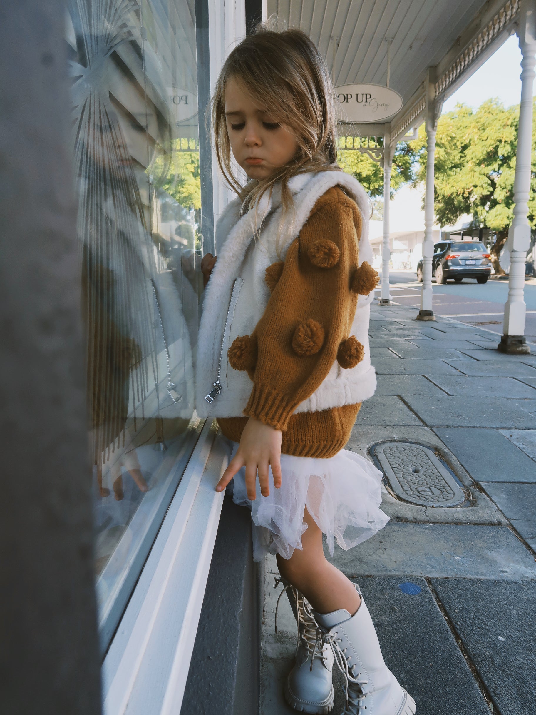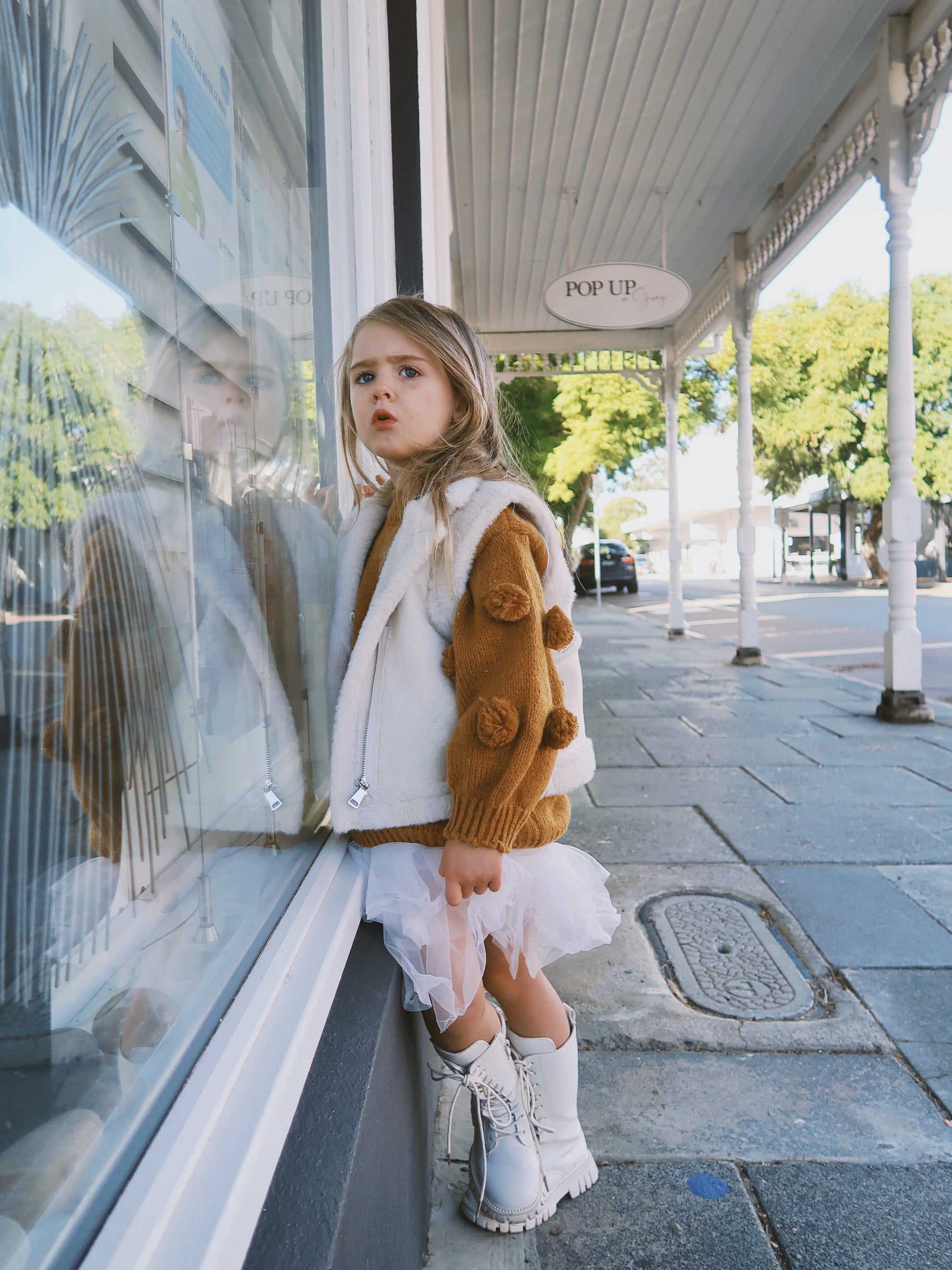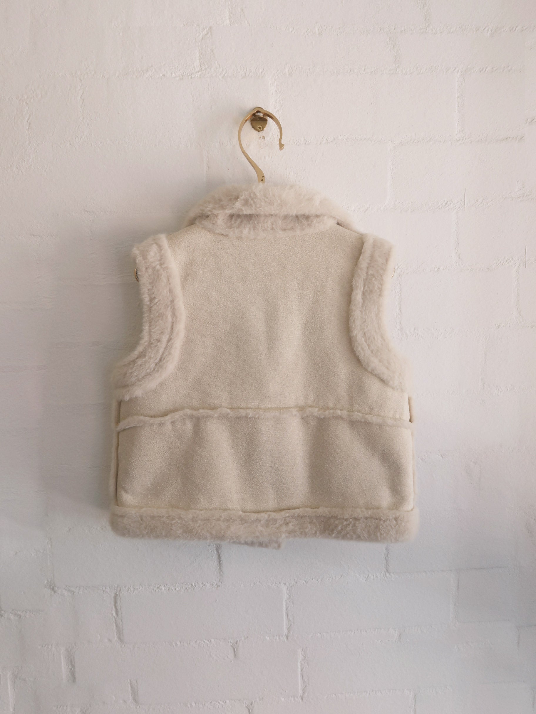 Meet the latest in our Mini Mode winter collection. The Lulu Biker Vest. With its stunning soft faux fur interior lining, to faux suede panel detailing and zippers - this coat is designed to turn heads when your little one is on her way for a babycino.