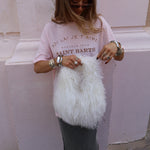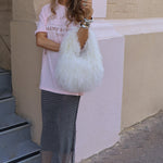 The Manhattan Bag in Cloud Dancer is winter magic in accessory form. Crafted from cloud-soft Mongolian fur, this fluffy tote bag delivers that signature M&A texture. Plush, touchable, and beautifully dramatic.