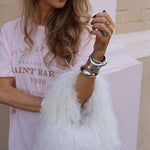The Cloud Dancer colourway is clean, crisp and effortlessly chic. It elevates denim, punctuates neutrals, and adds pure luxury to any going-out look. Lightweight yet striking, she’s the bag that takes you from long lunches to après cocktails with zero effort and maximum fluff factor.