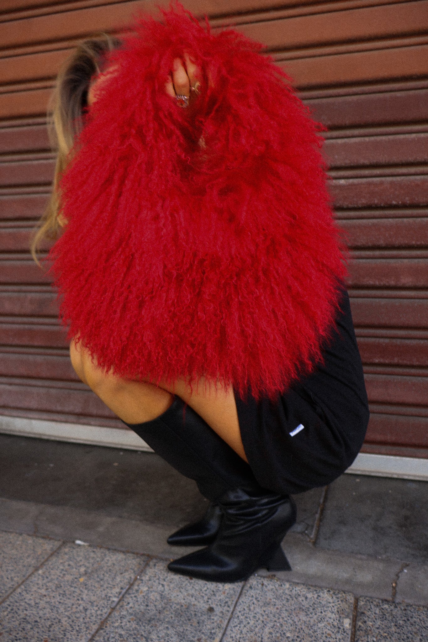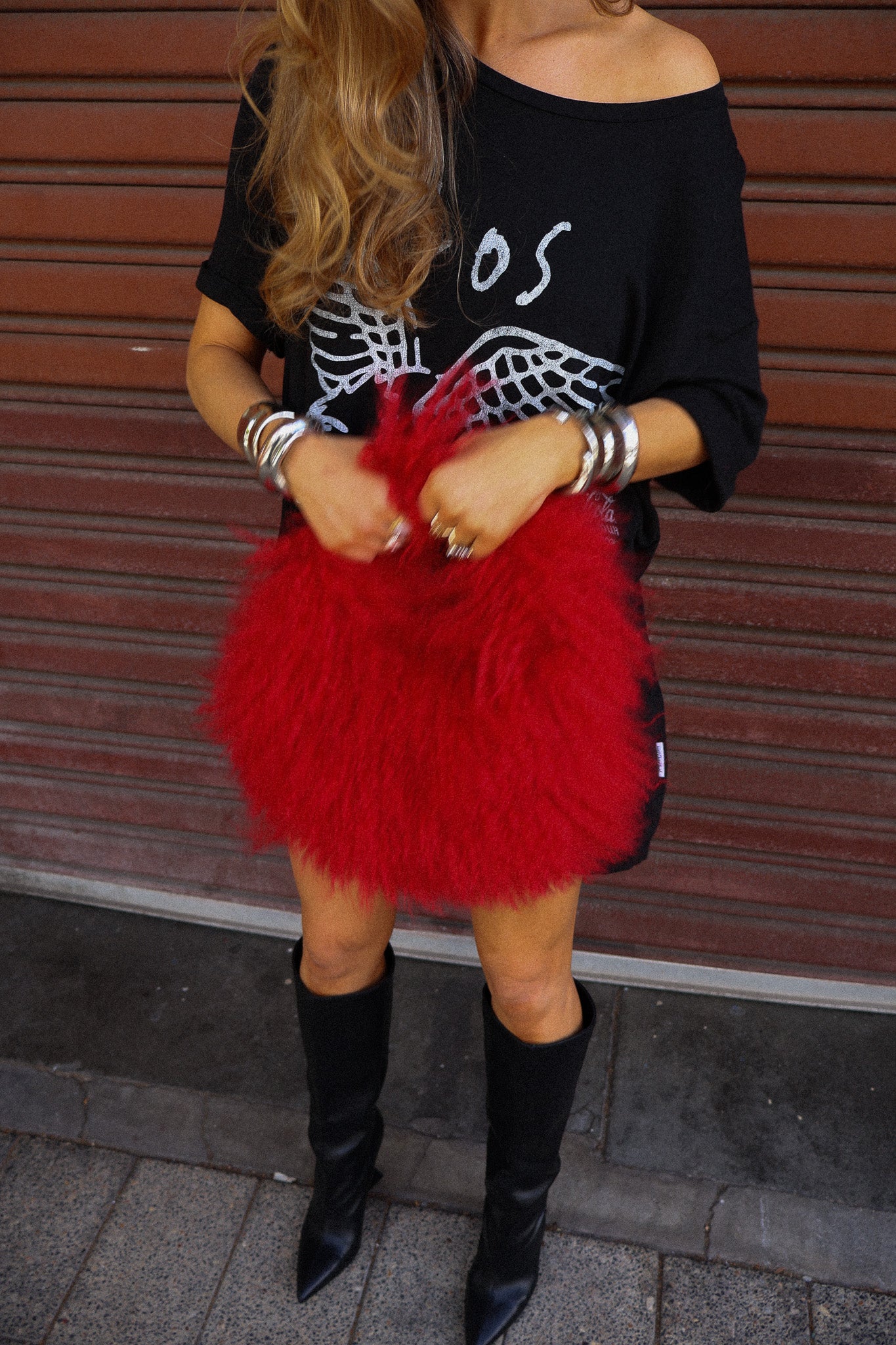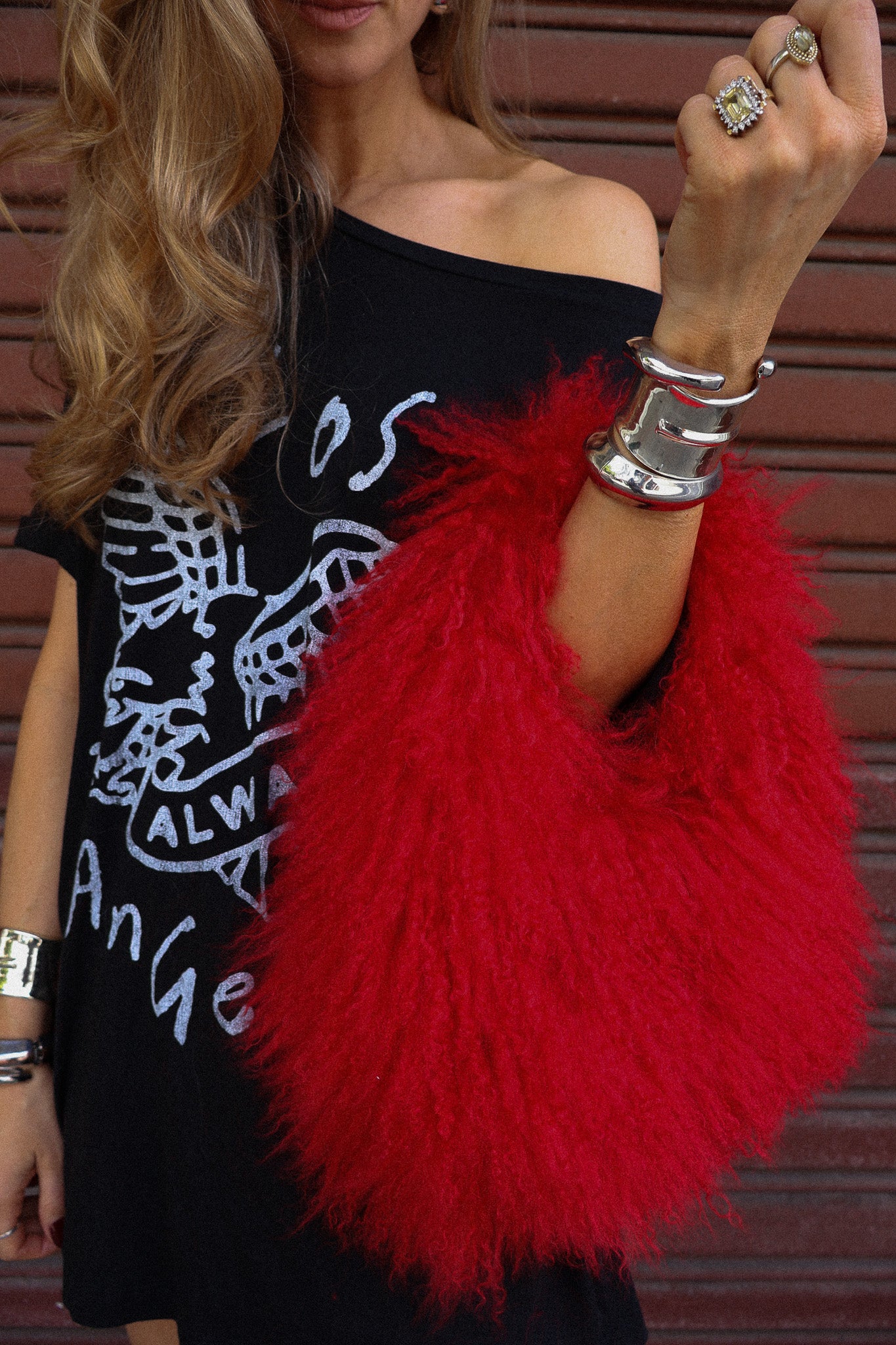 Meet the Manhattan Bag in Ruby. Crafted from beautifully textured Mongolian fur, this delicious furry handbag delivers that rich, touch-me fluff and high-voltage glamour Mode & Affaire is known for.