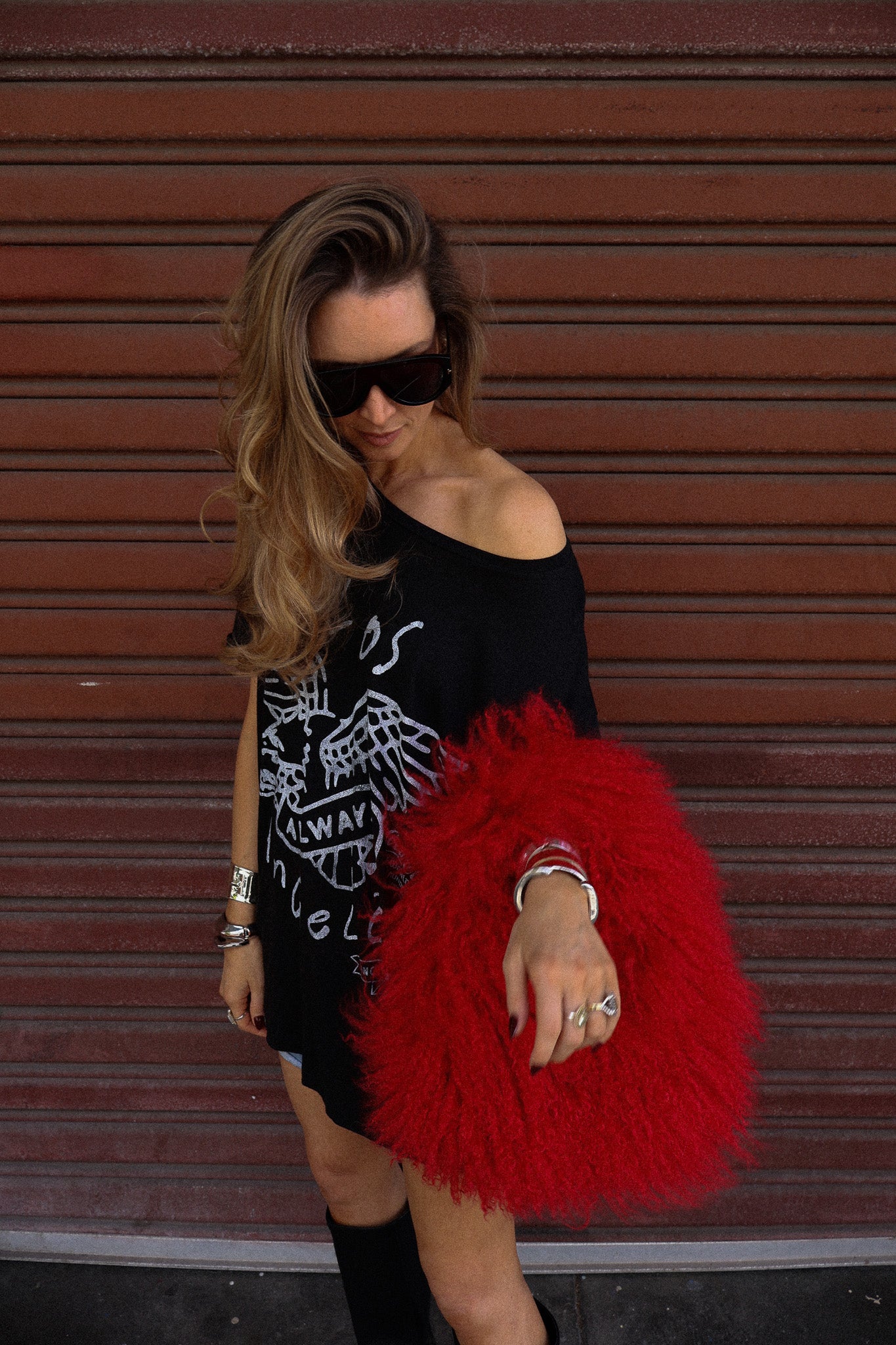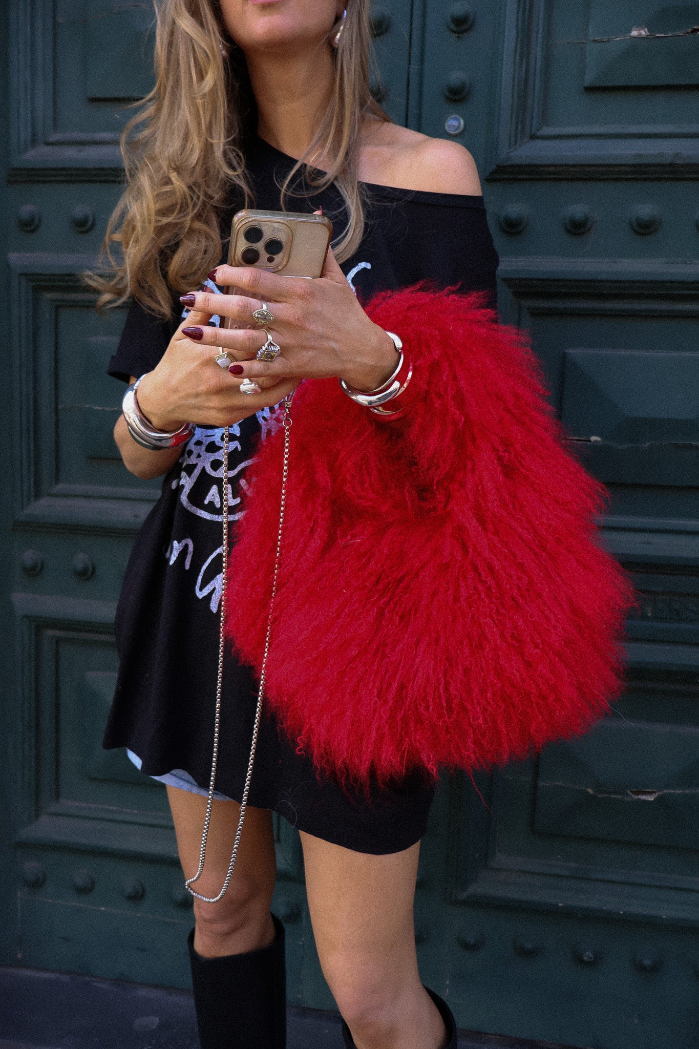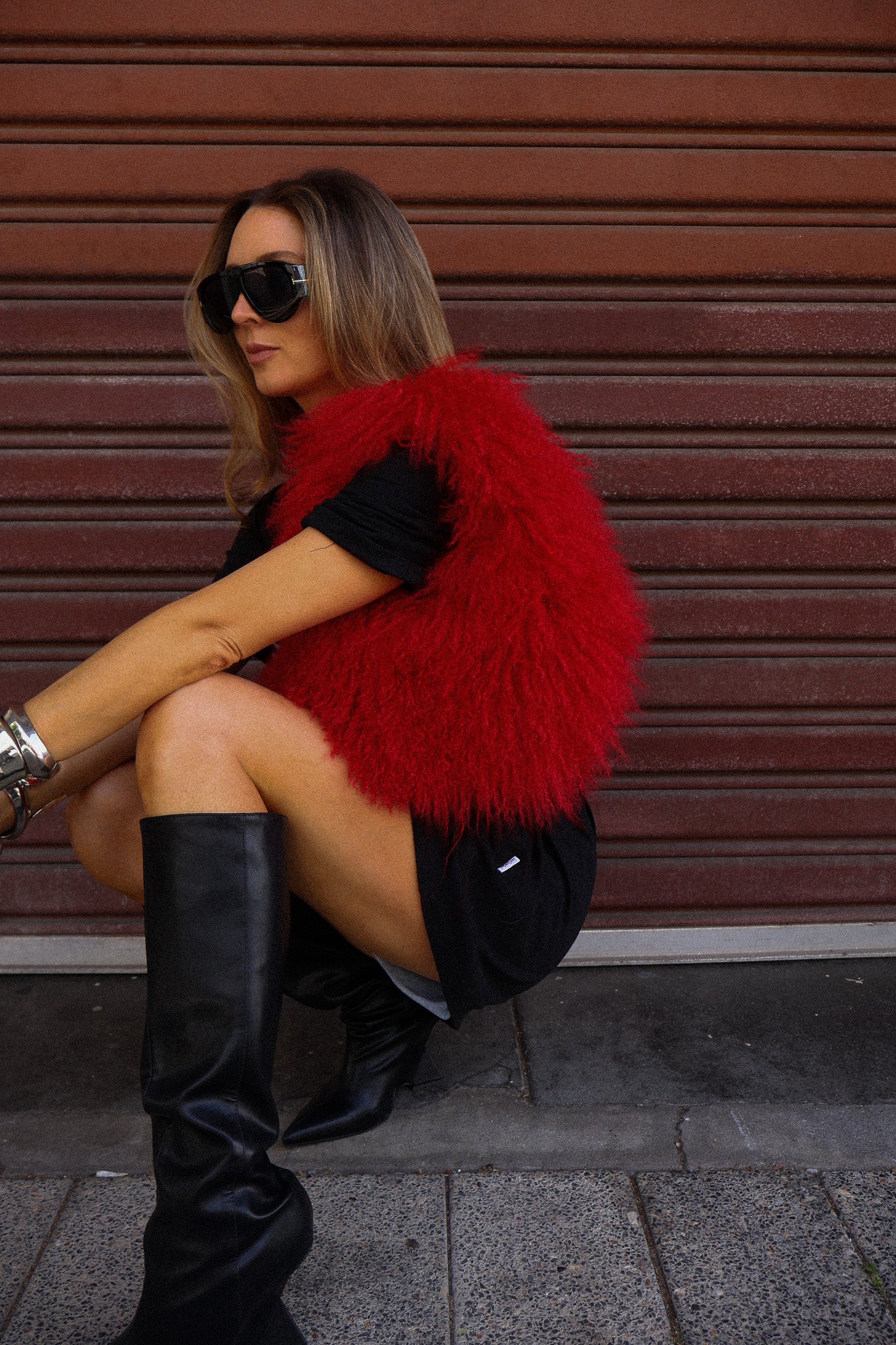 Meet the Manhattan Bag in Ruby. Crafted from beautifully textured Mongolian fur, this delicious furry handbag delivers that rich, touch-me fluff and high-voltage glamour Mode & Affaire is known for.