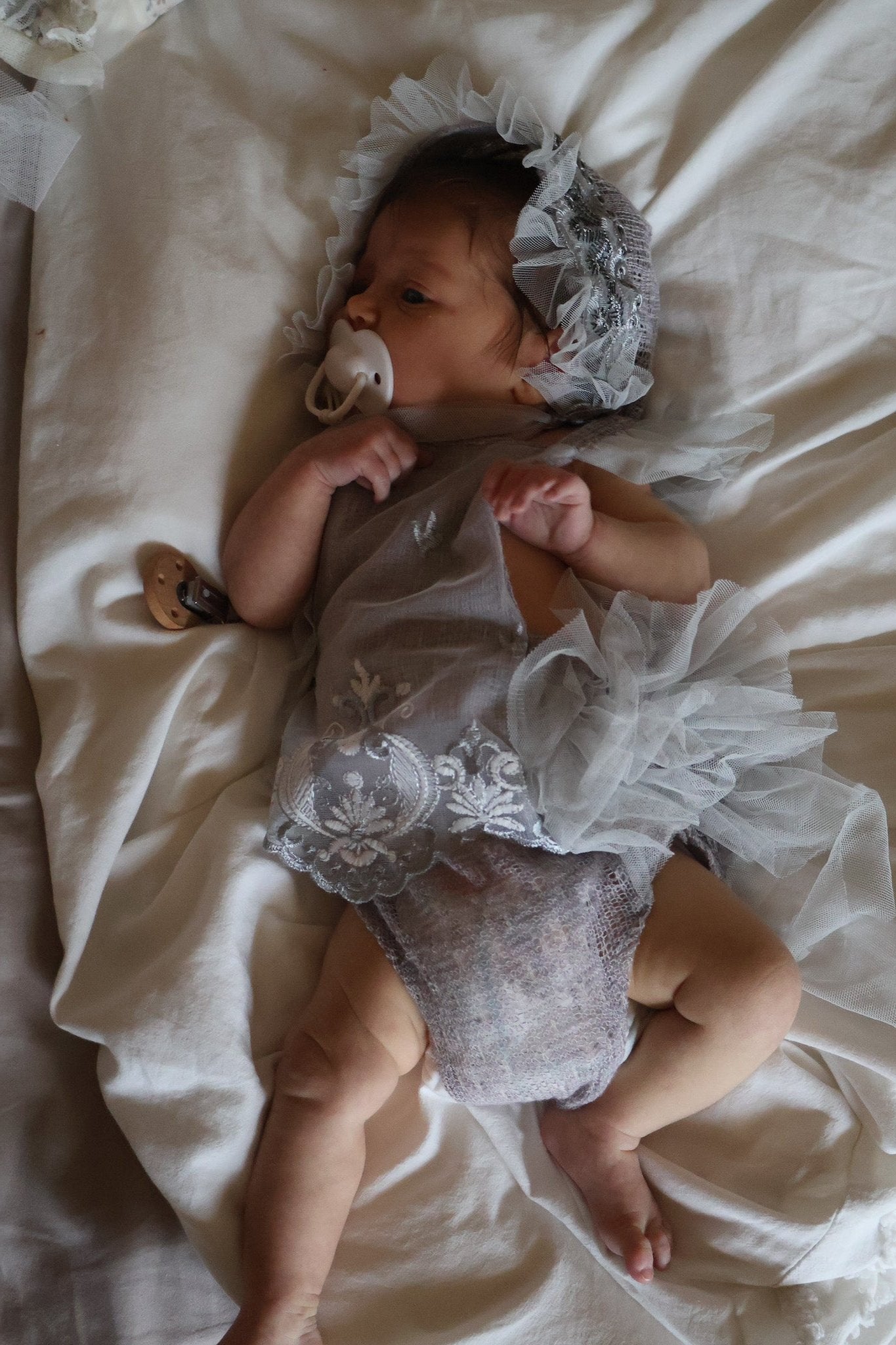 Ellie Newborn Romper & Bonnet in Dove