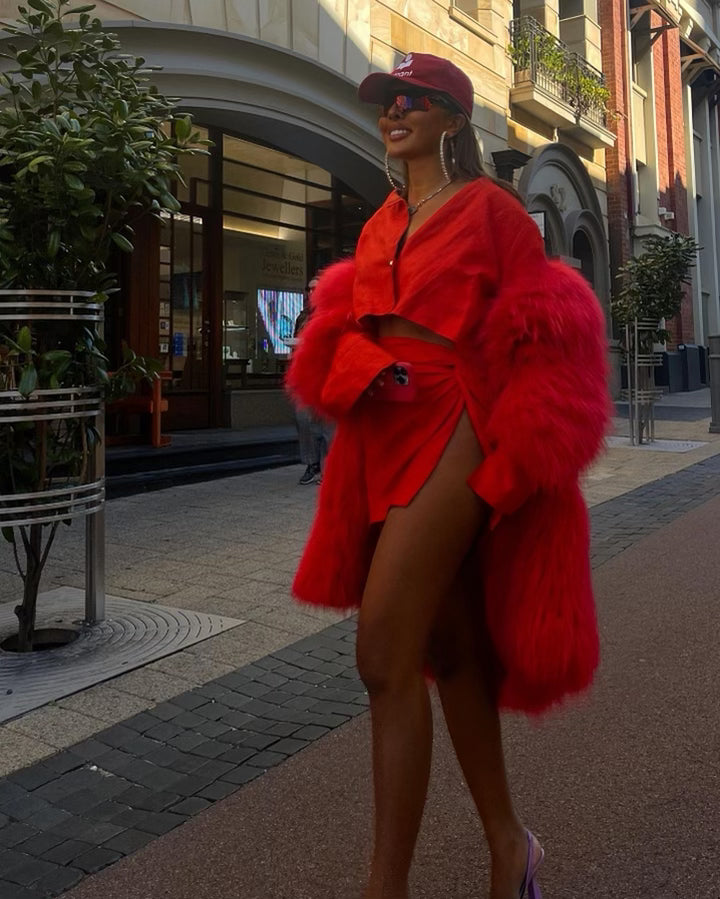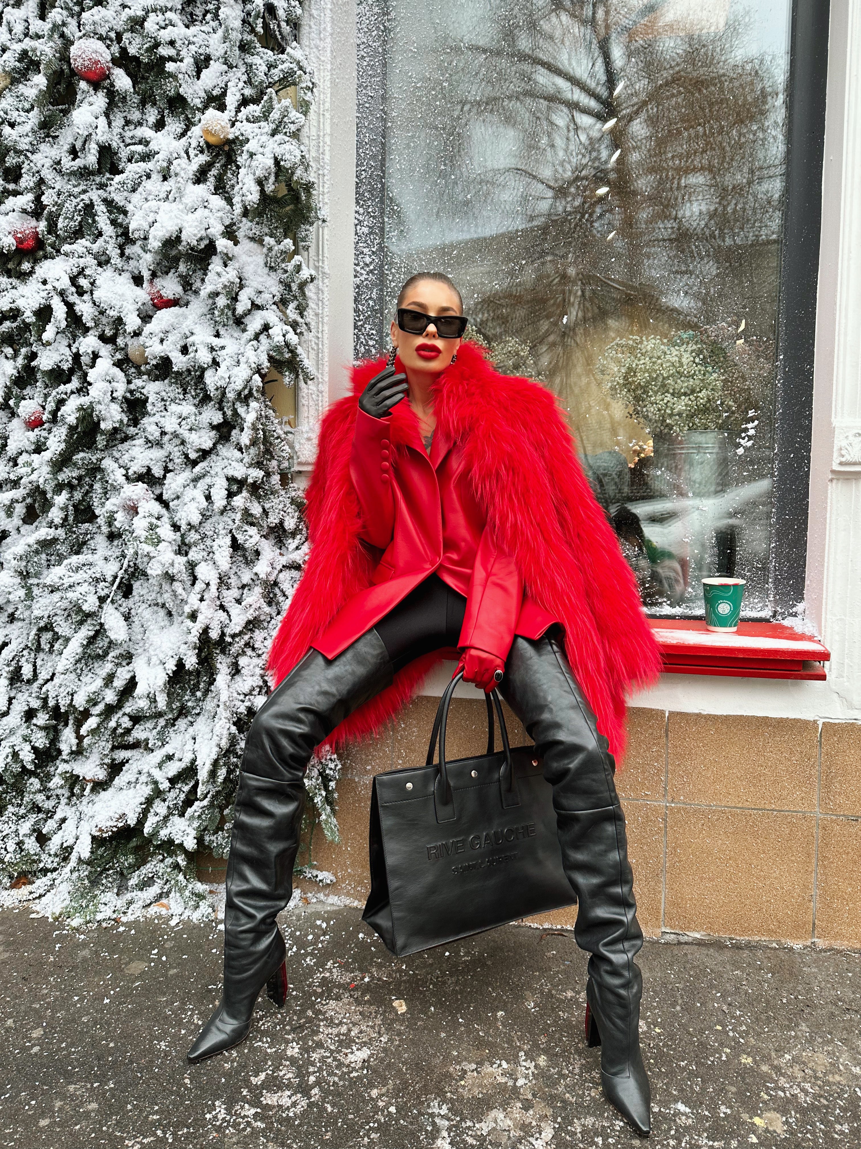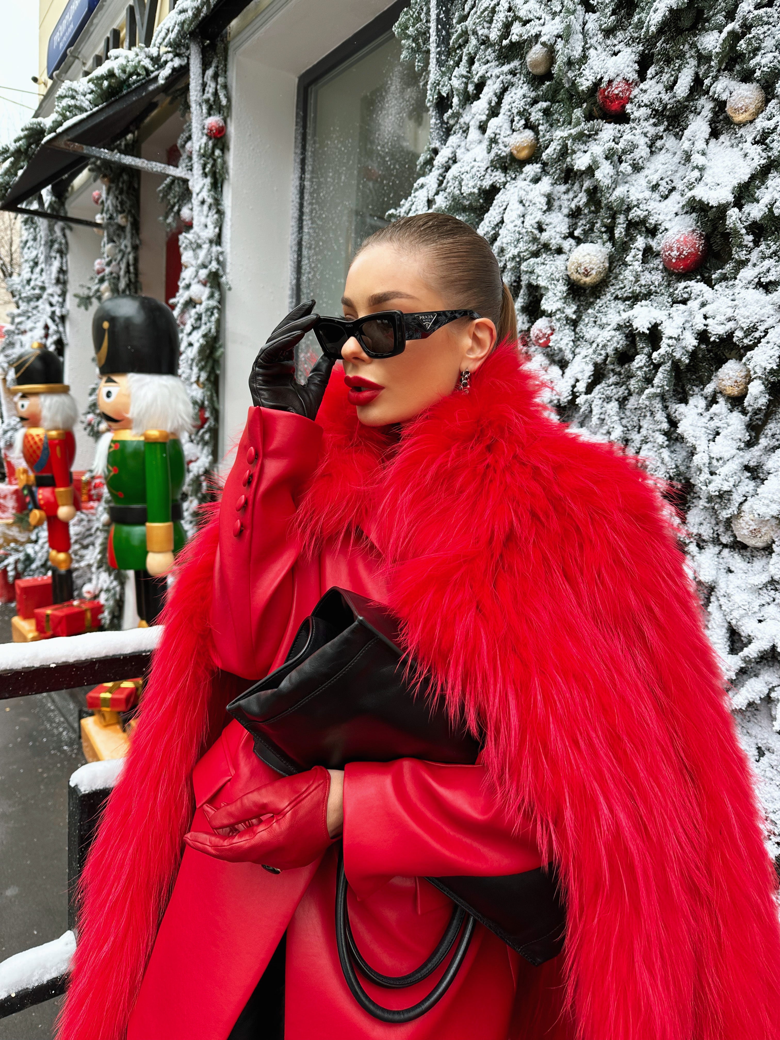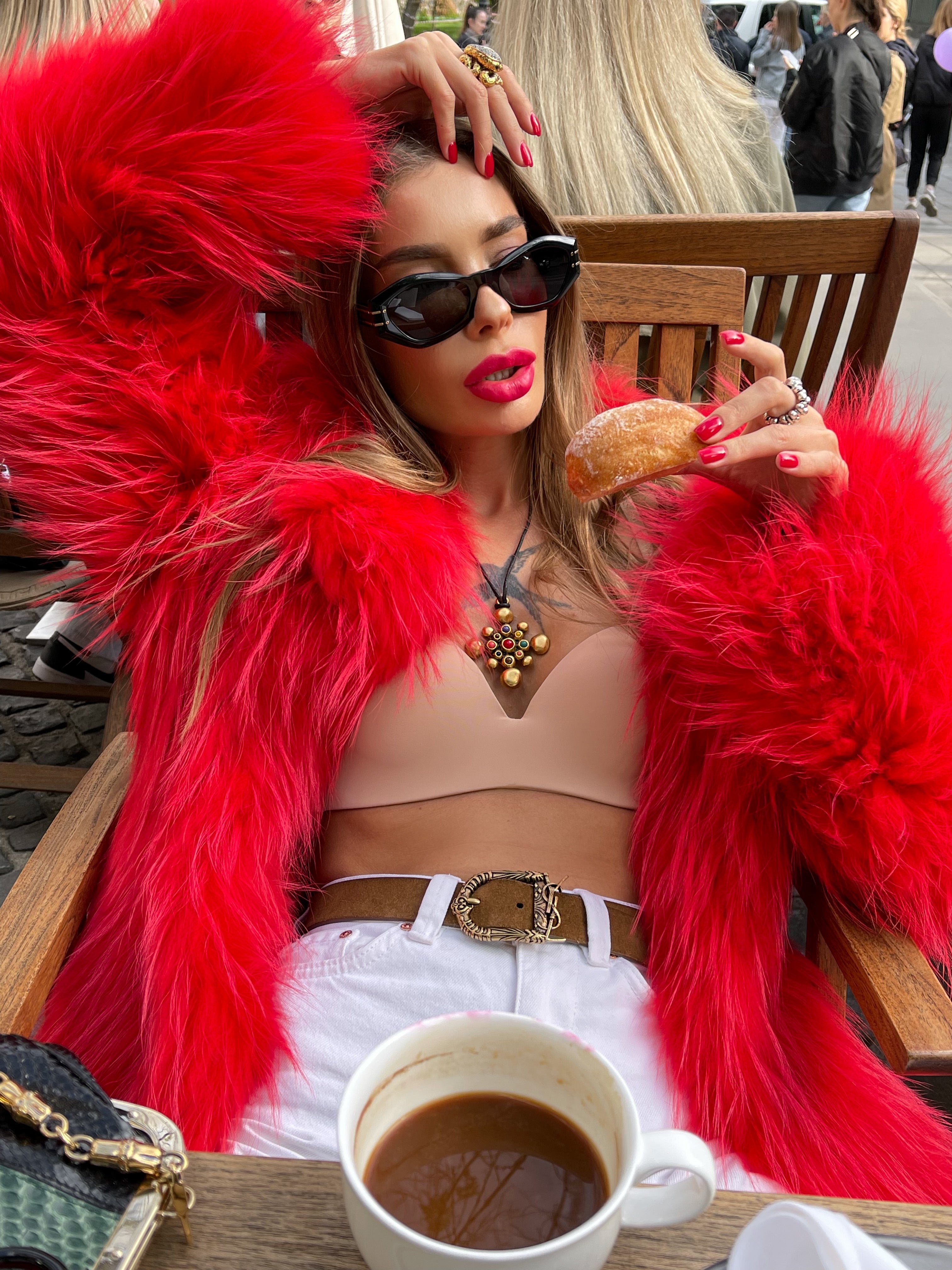 For the last girl on the dance floor, this stunning jacket is both fun to wear and incredibly soft to touch. The gorgeous 100% knitted raccoon fur fluffy jacket is incredibly lightweight and available in an array of fabulous colours, including bold maraschino cherry red (pictured). This long line fluffy jacket is fashioned with the convenient inclusion of twin hip pockets, freeing up those hands for One More Dance!