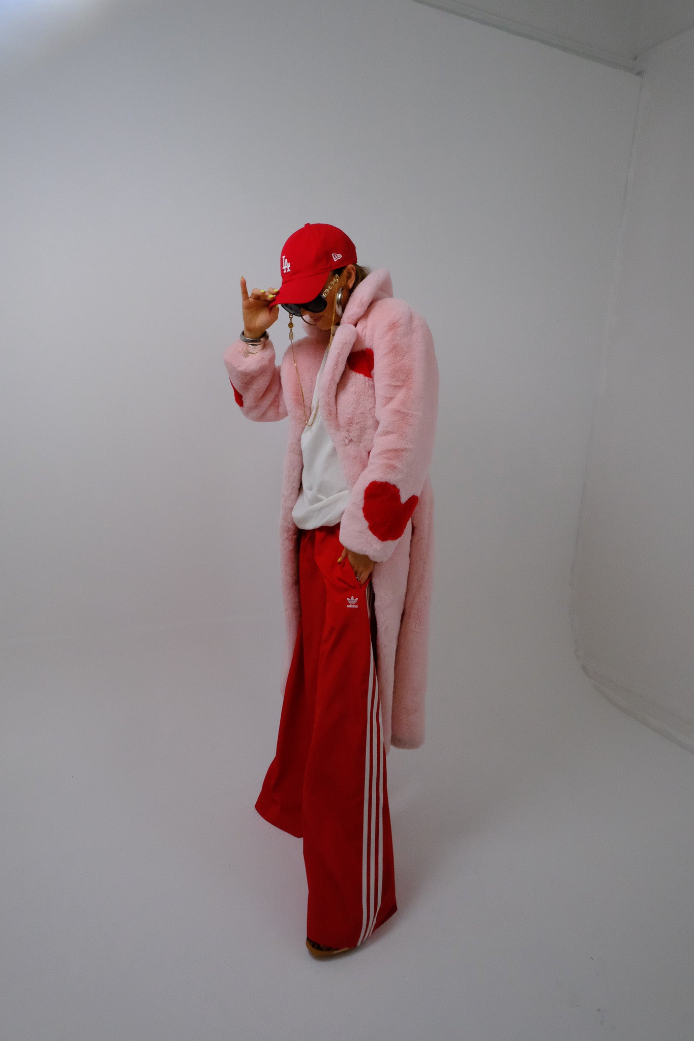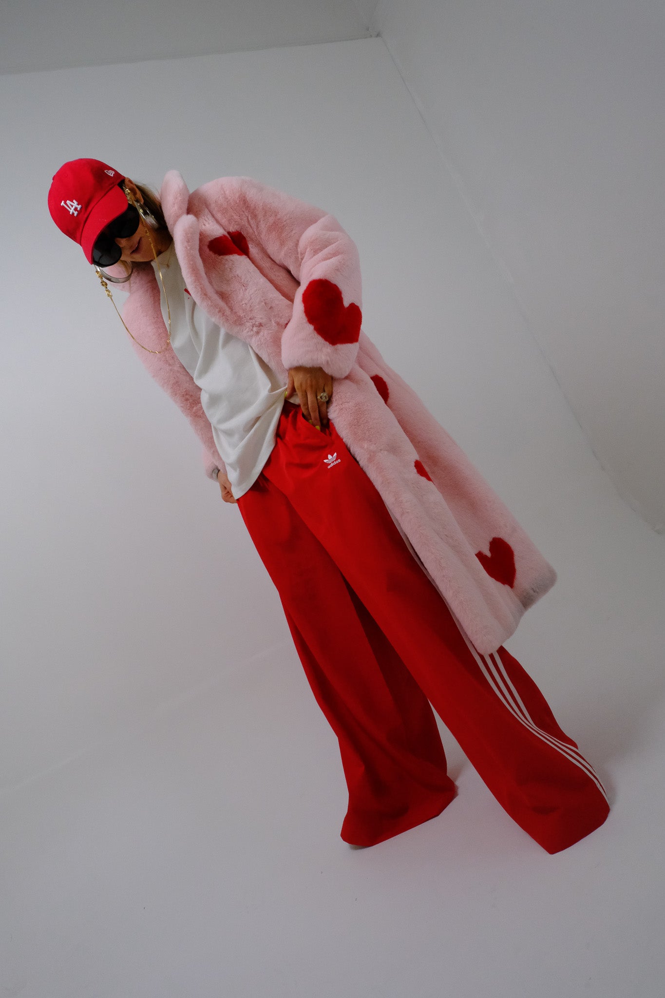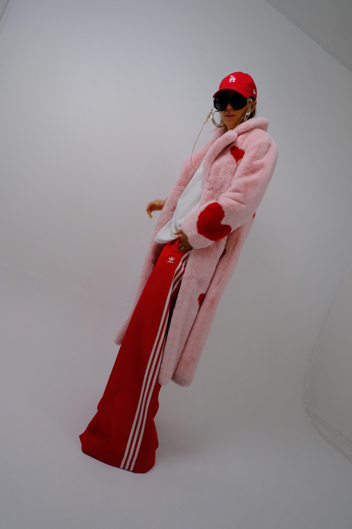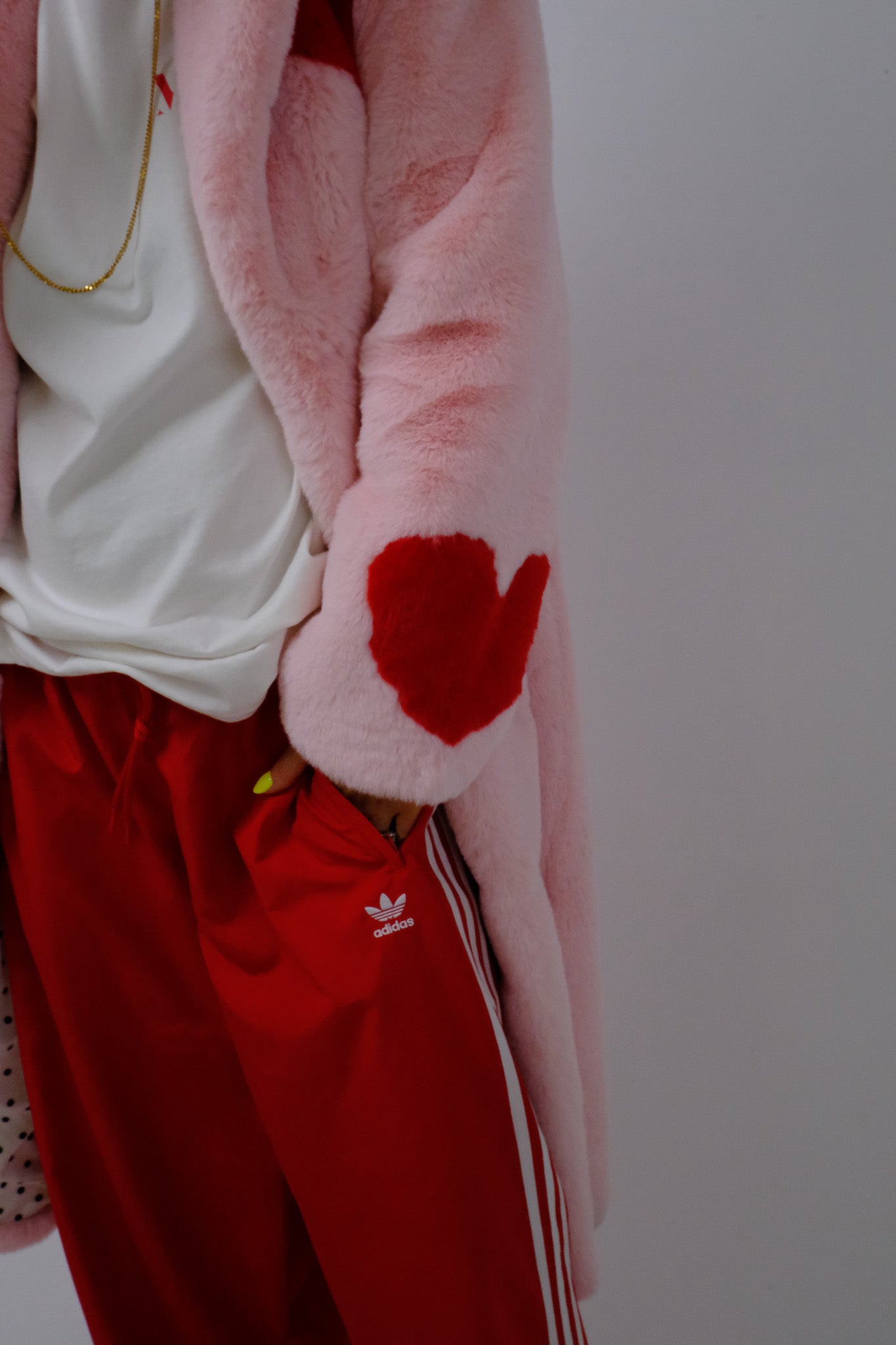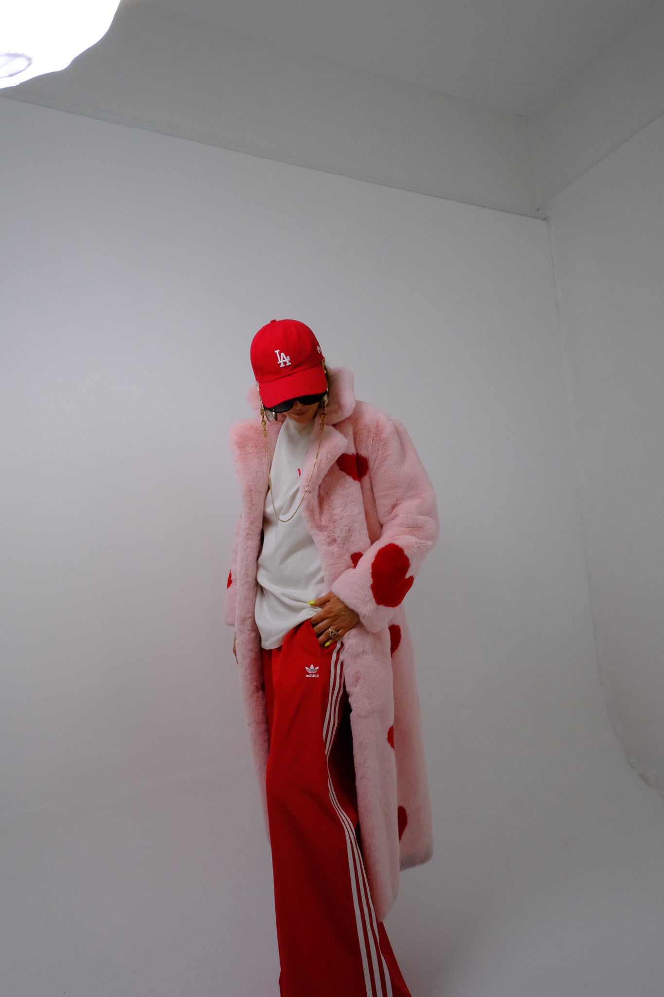 Wear your heart on your sleeve (literally!) in the Queen Of Hearts Faux Coat. We've emulated our magnificent Queen of Hearts pink fur coat and created this enchanting faux-fur version just for you. Equal part feminine and rockstar glam, this charismatic piece will turn heads this winter.
