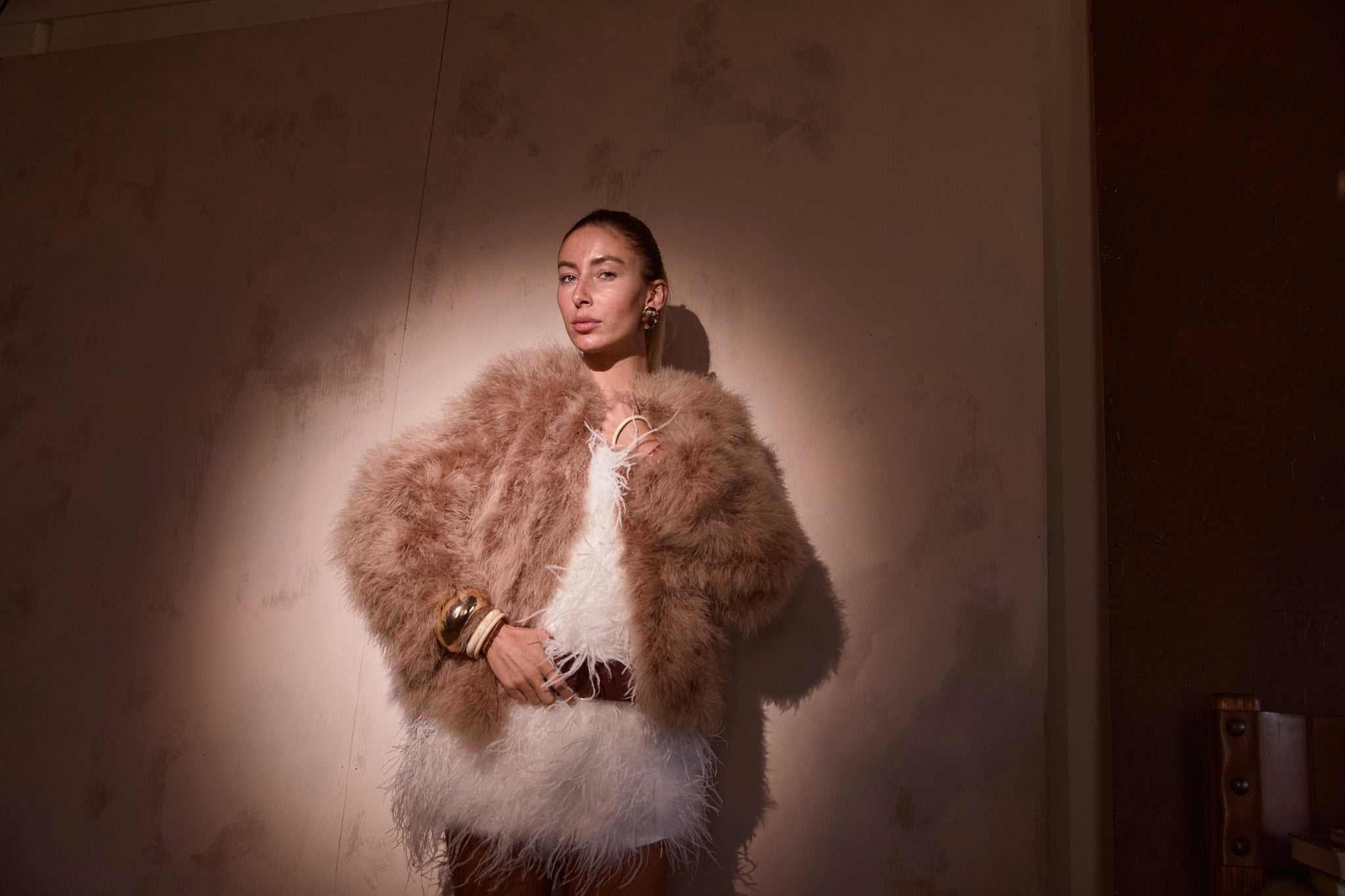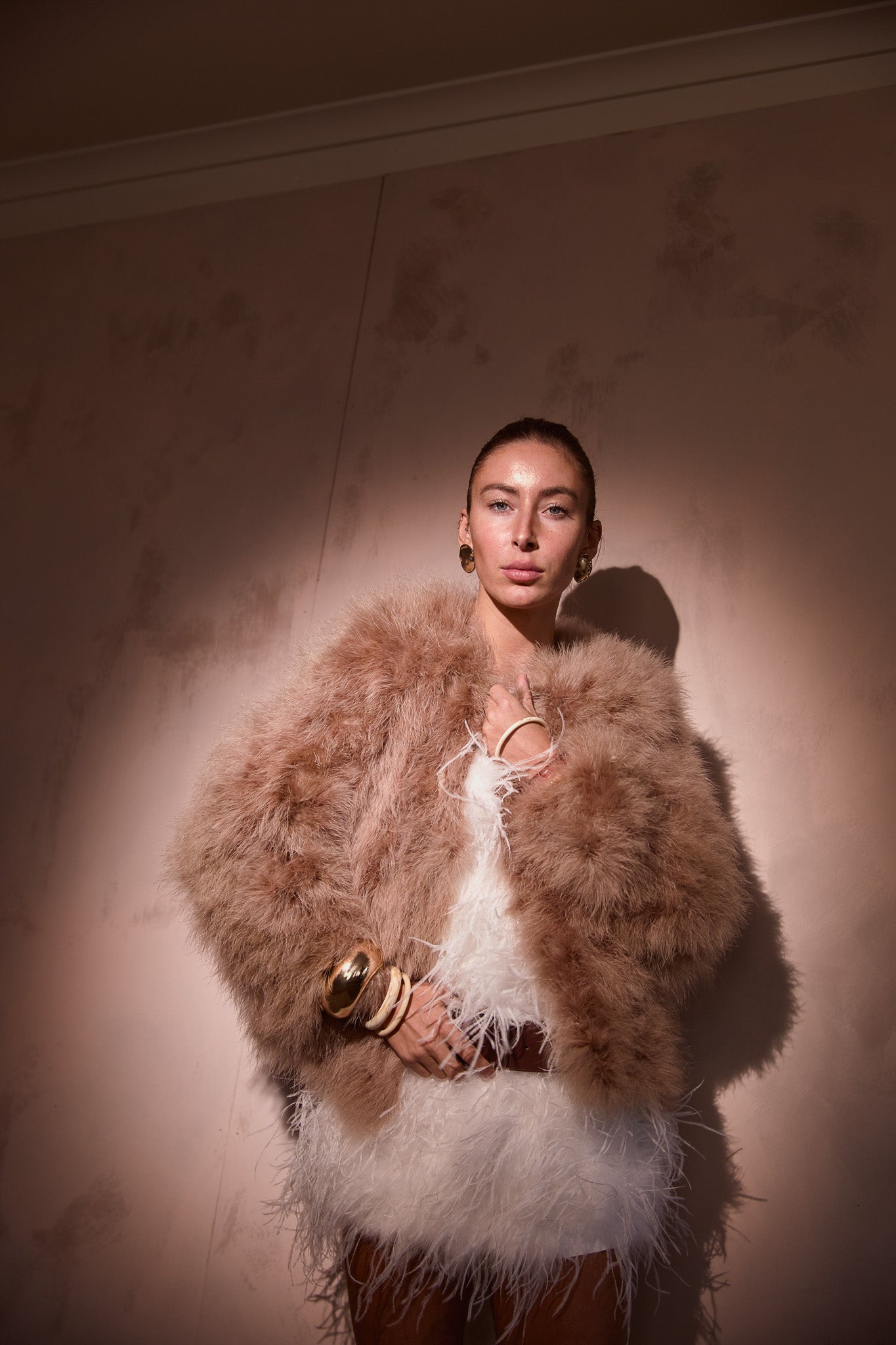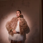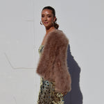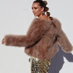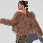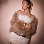 The Saville jacket is made from 100% marabou feather with satin lining.