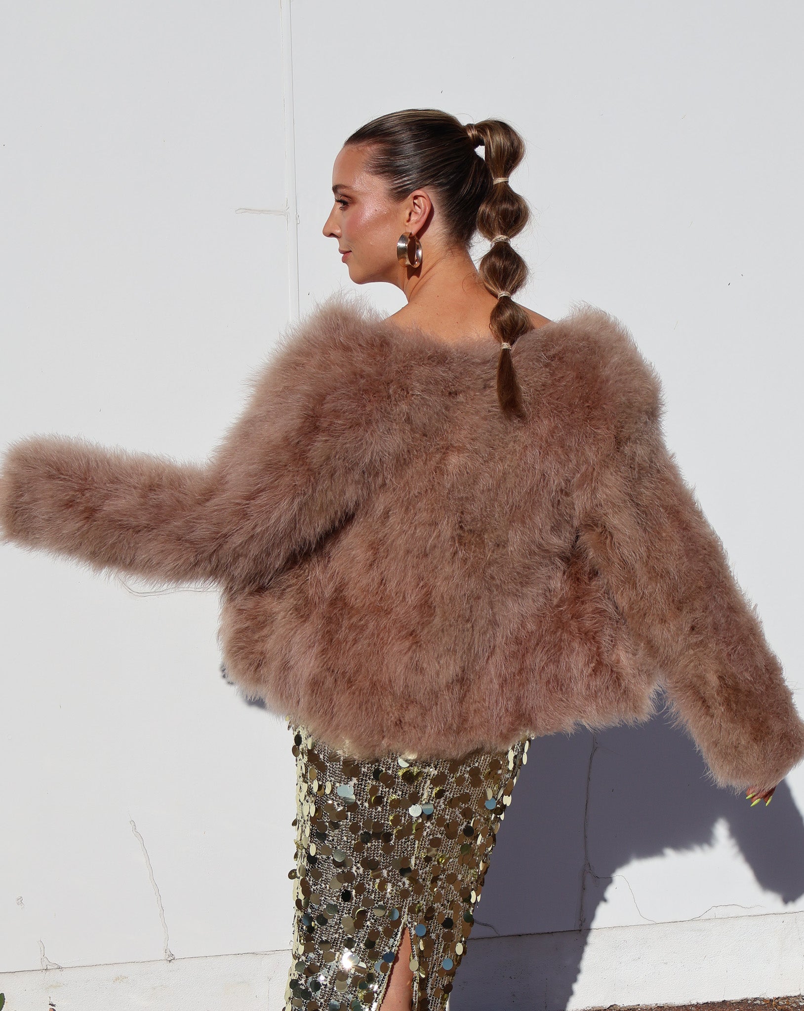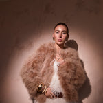 This gorgeous bomber style marabou jacket is covered in the softest of marabou feathers, each of them hand dyed in a gorgeous soft luminous white. With a satin lining and clips at the front of the garment, the Saville Marabou Jacket can be worn all-year-round as it is incredibly trans seasonal as it can be thrown over an outfit in Winter, Spring or Autumn.