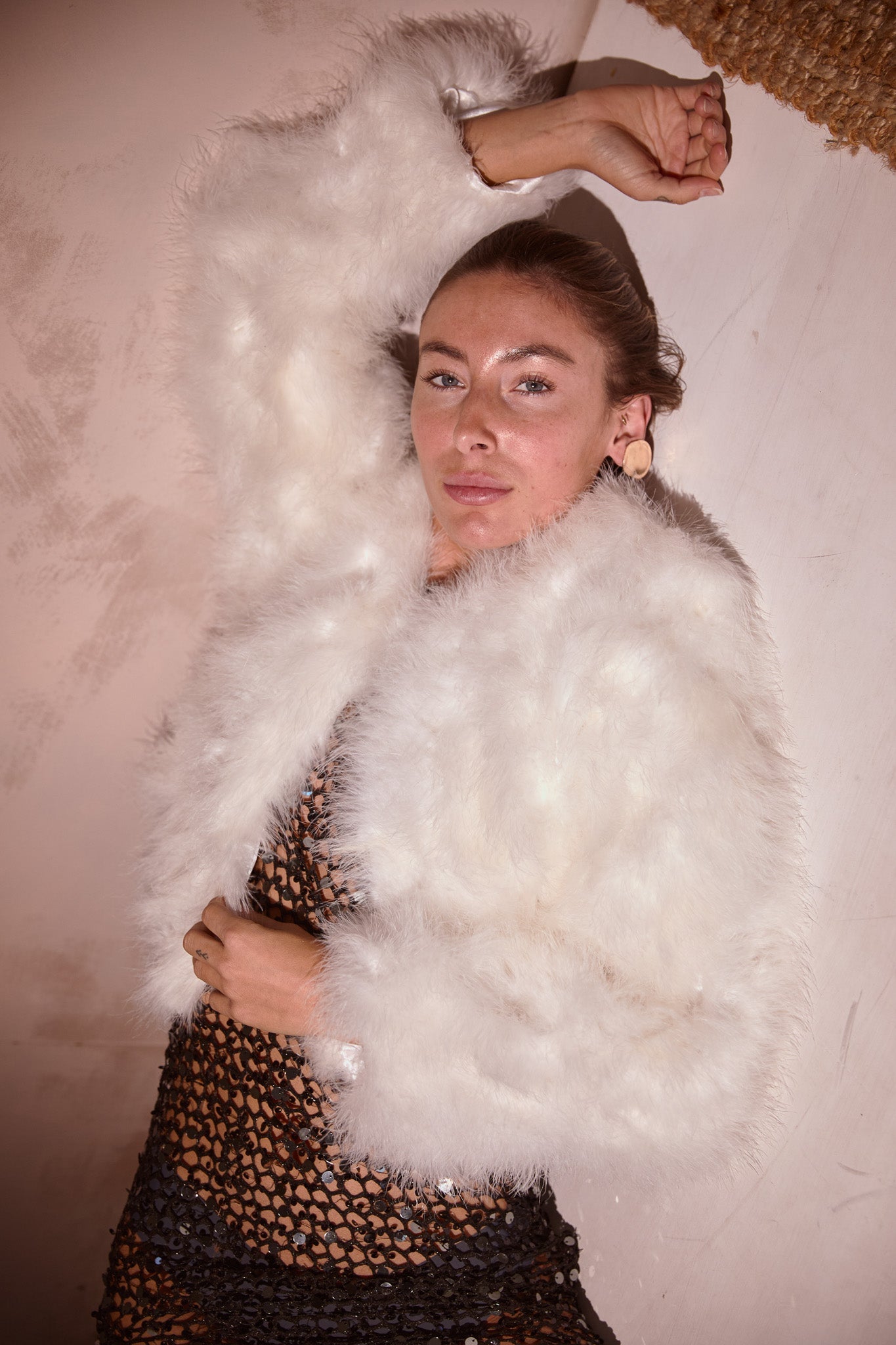 Saville Marabou Jacket in Snow - Mode & Affaire