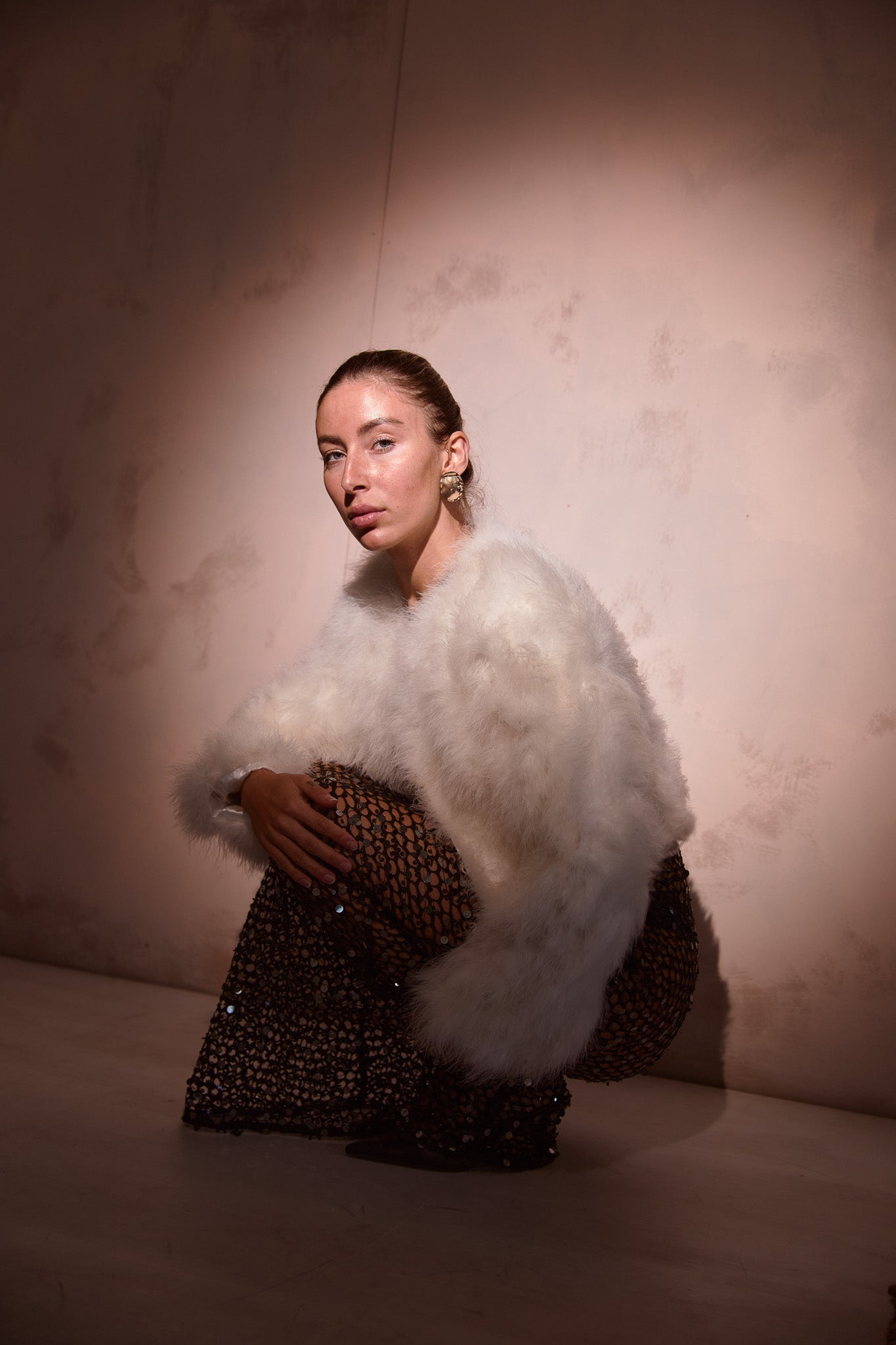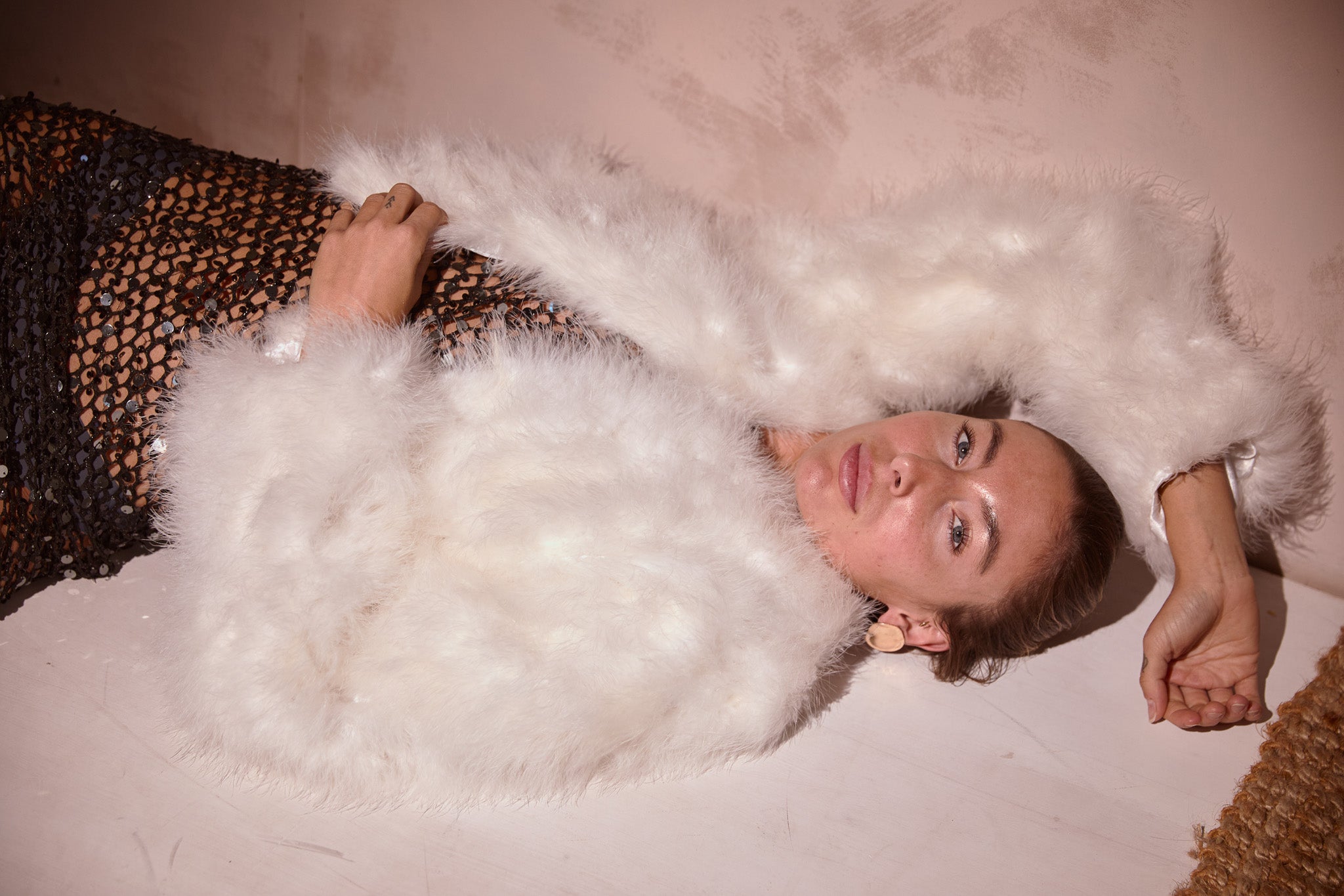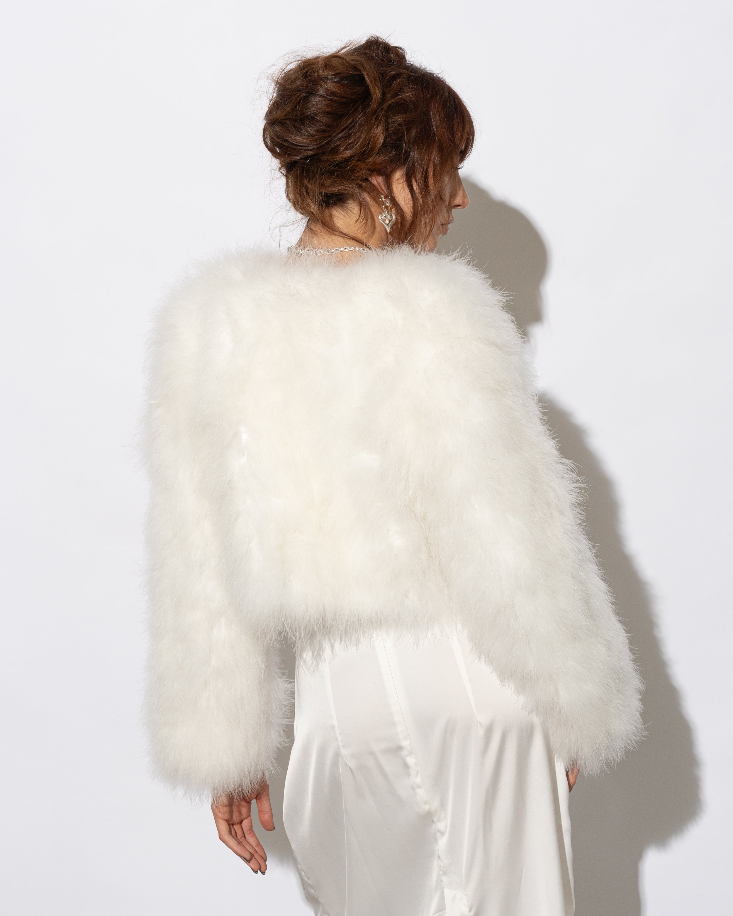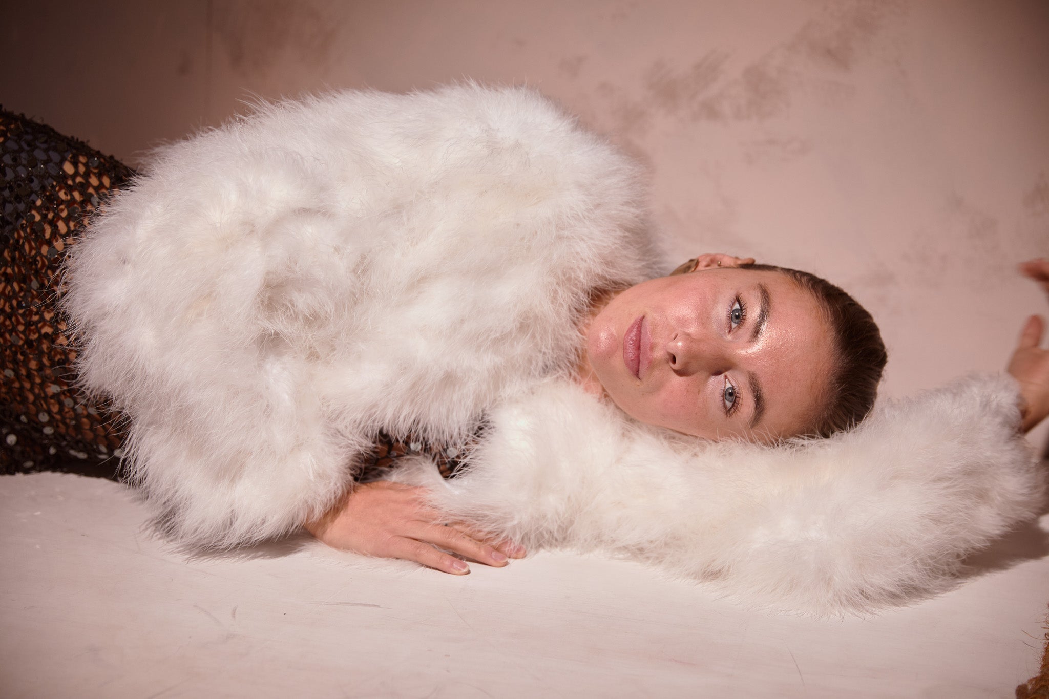 This gorgeous marabou feather jacket is more hard-wearing than it looks; resilient against a little spillage.