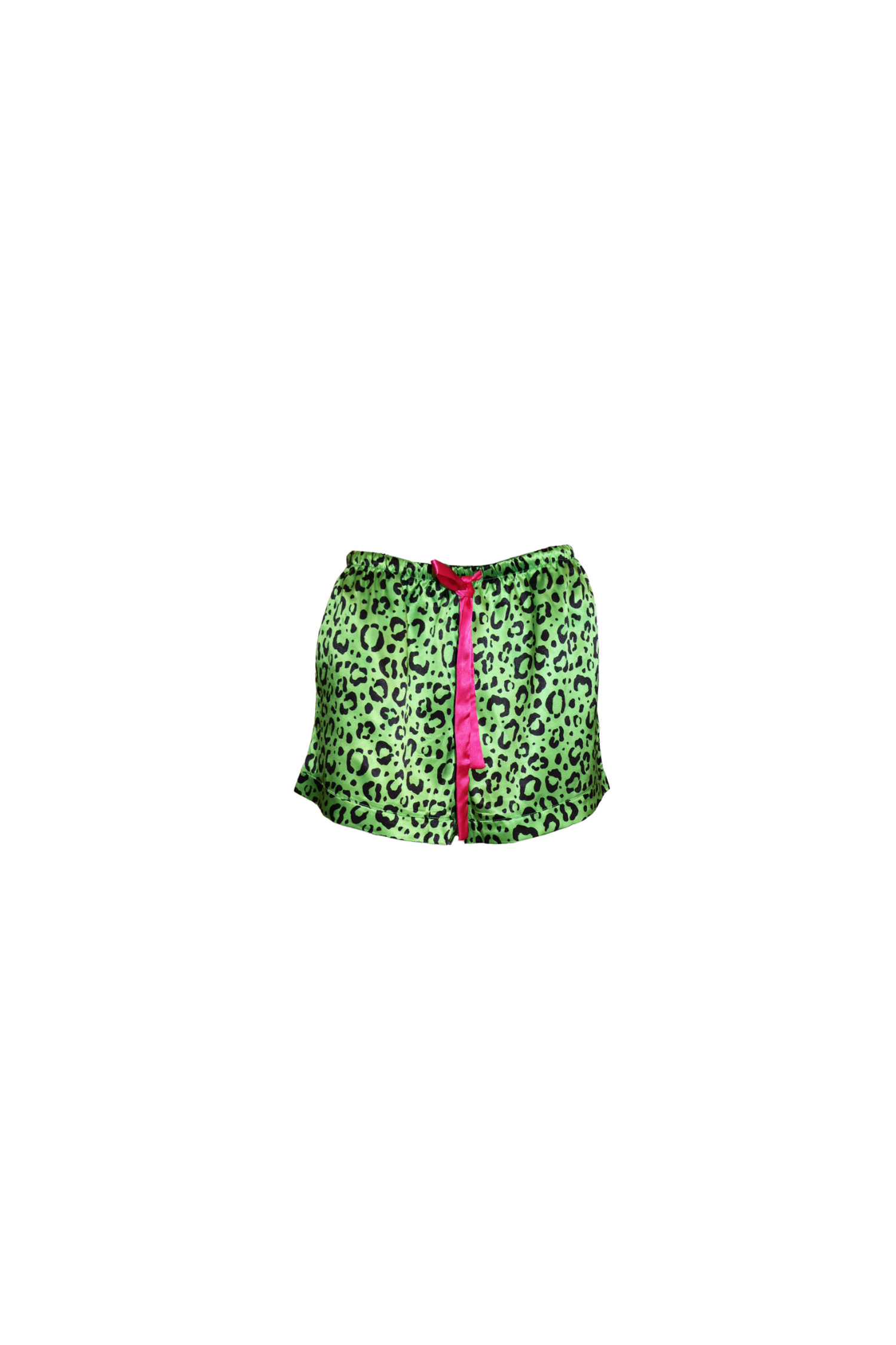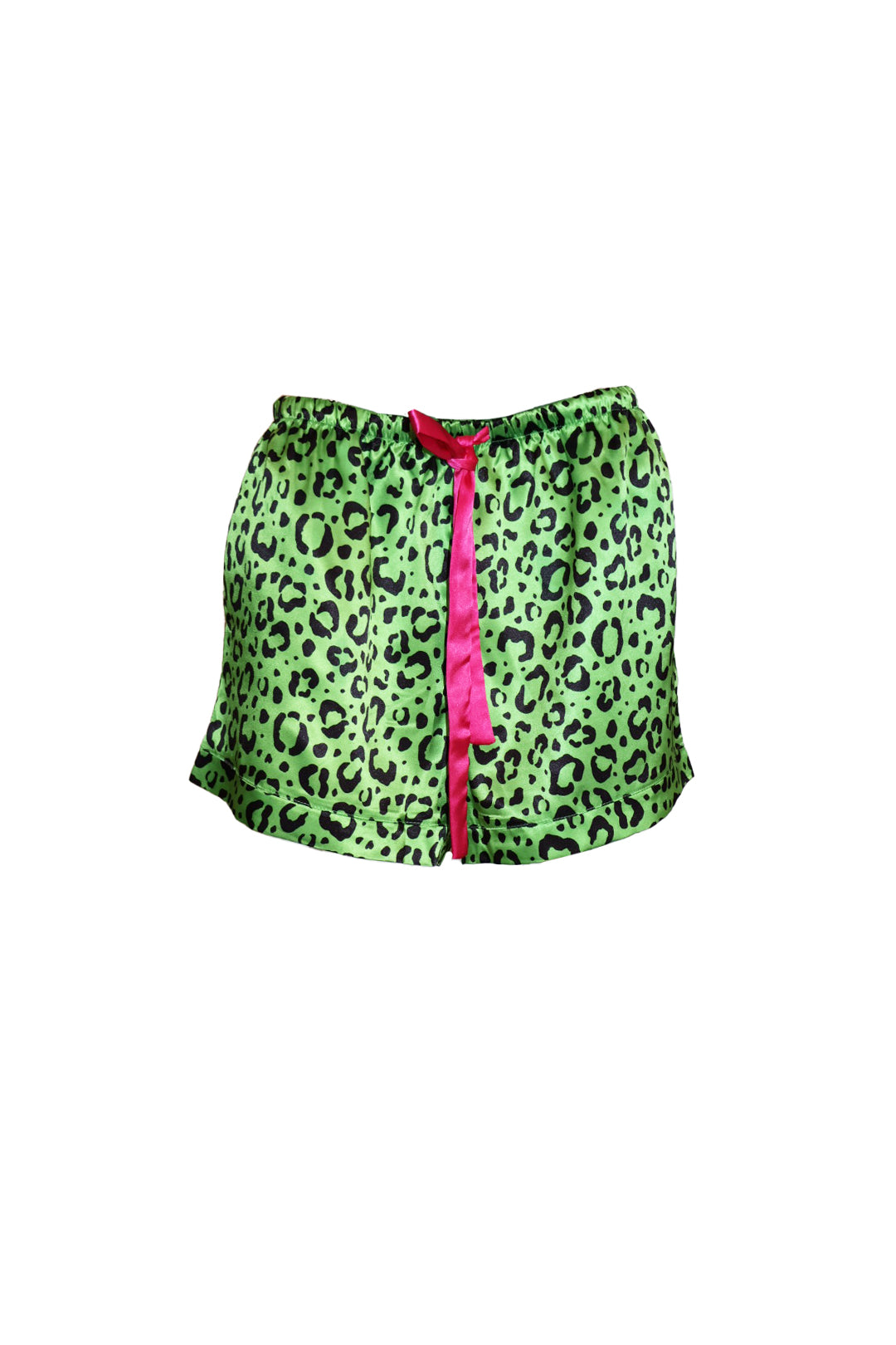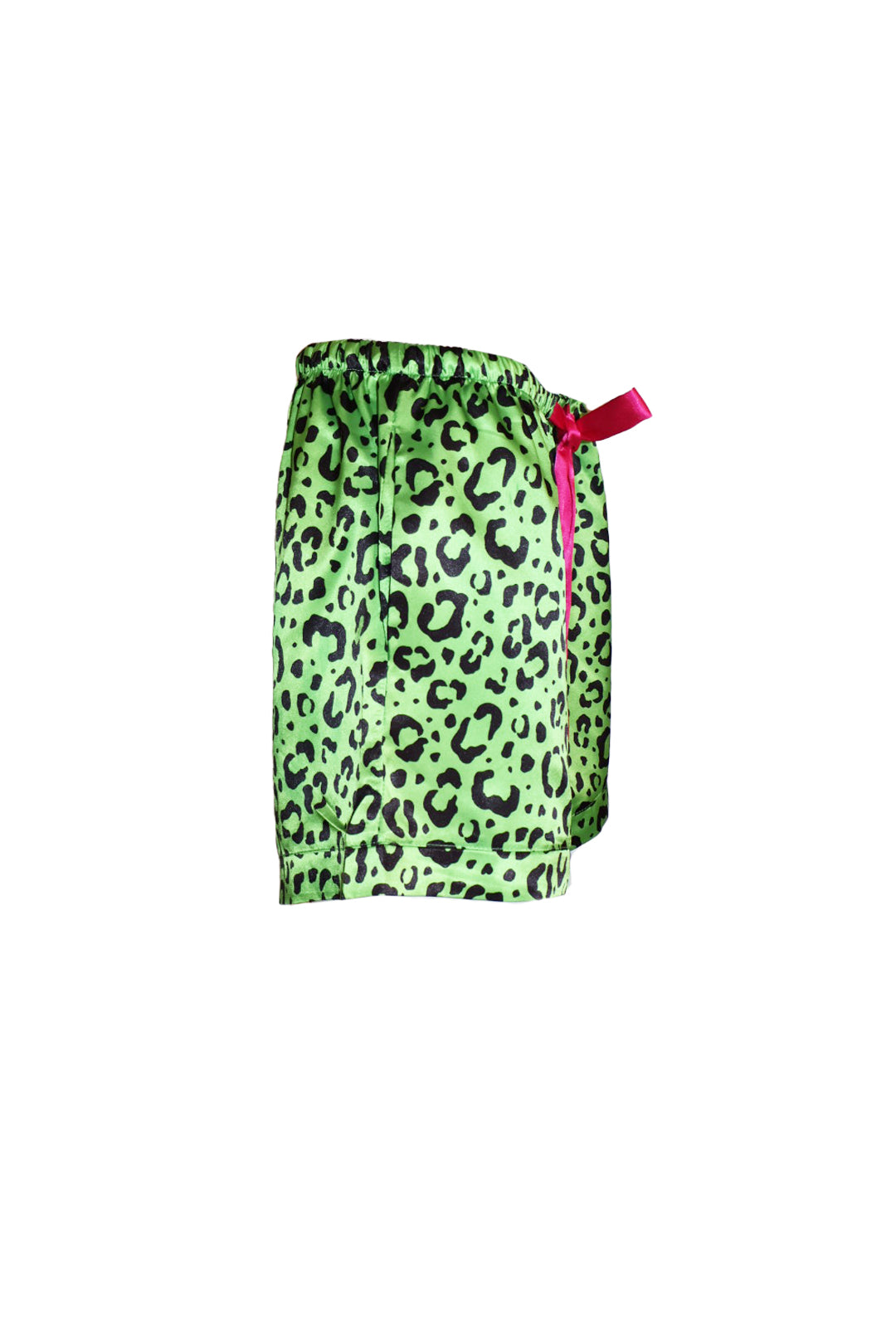 Into The Wild Satin Sleep Shorts in Neon Leopard